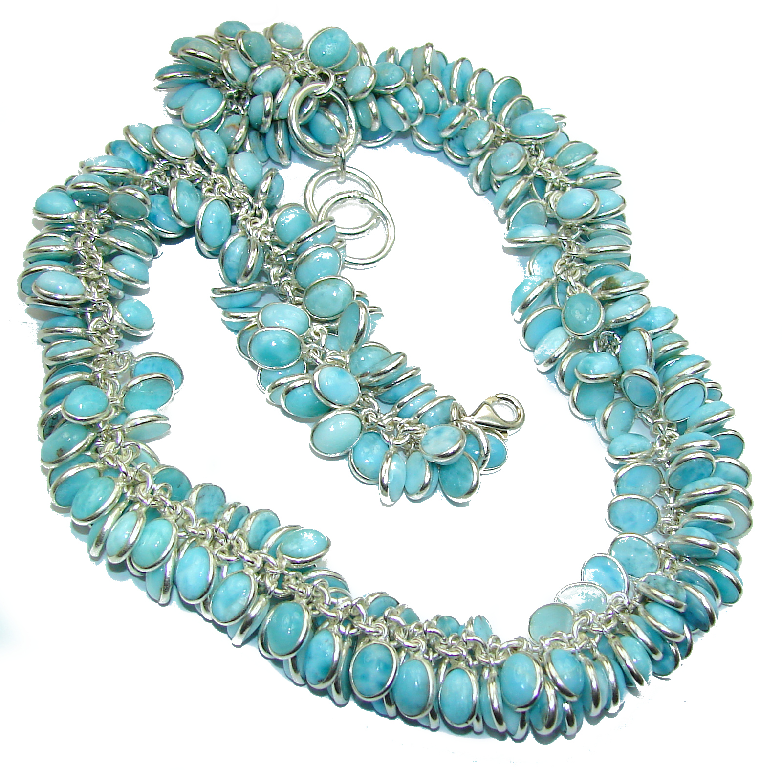 One of the kind Nature inspired Sublime Larimar .925 Sterling Silver handmade Cha- Cha necklace
