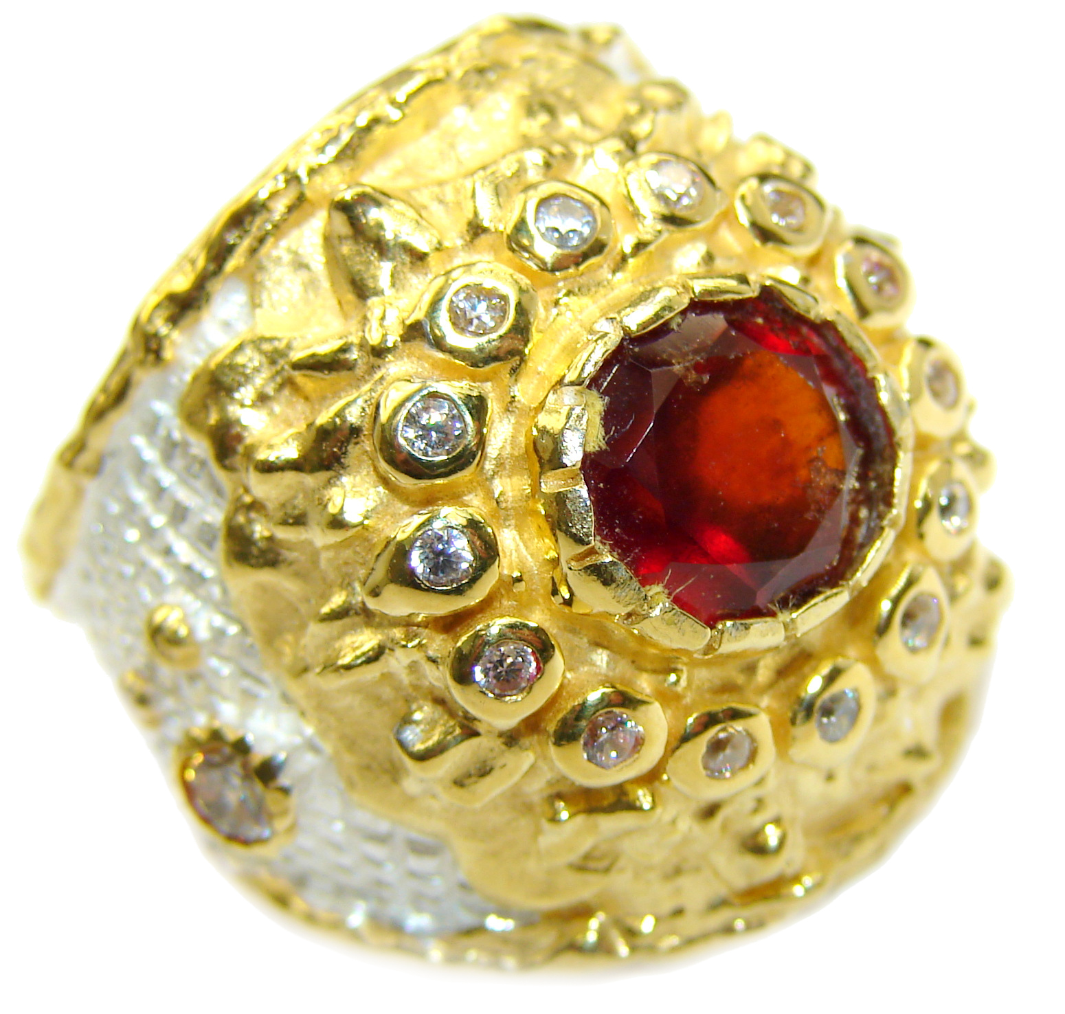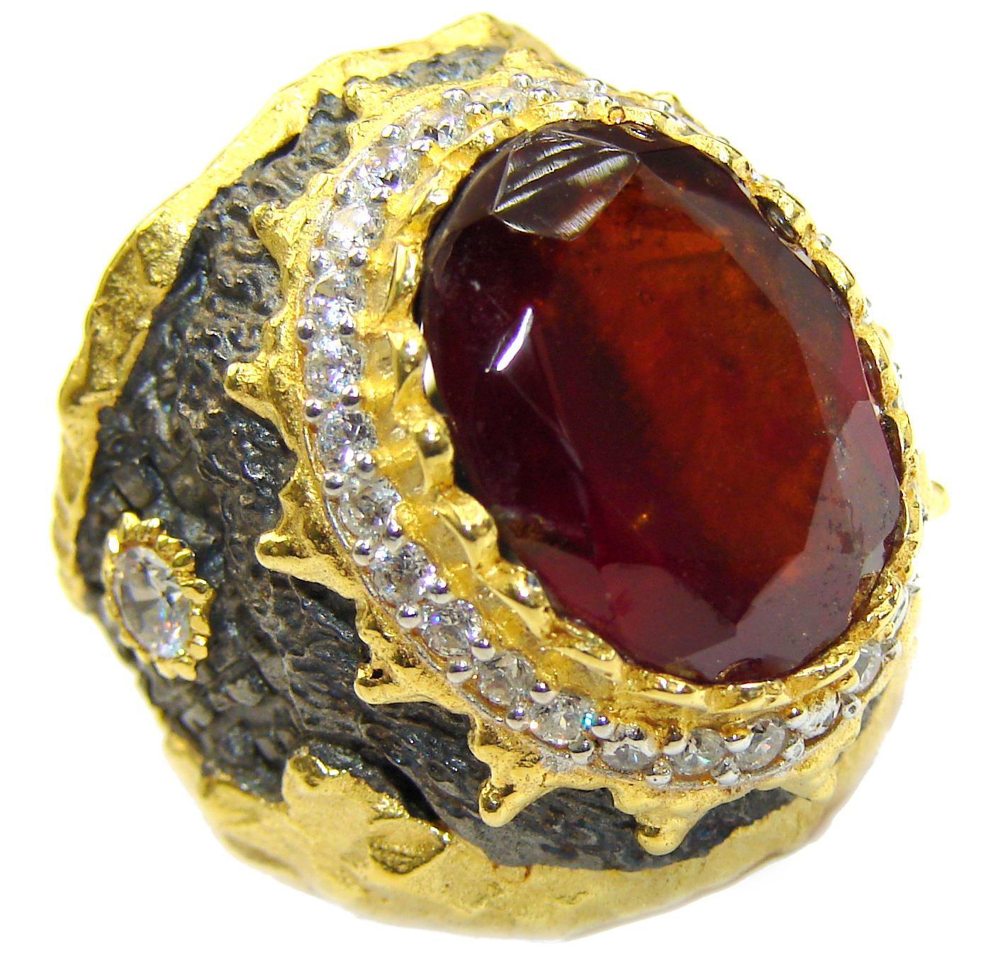 Large genuine Ruby 18K Gold over .925 Sterling Silver Statement Italy made ring; s. 7
