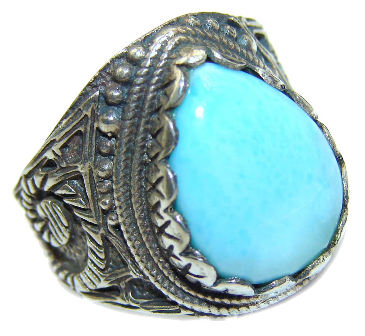 Vintage Design Natural Larimar .925 Sterling Silver handcrafted Ring s. 7