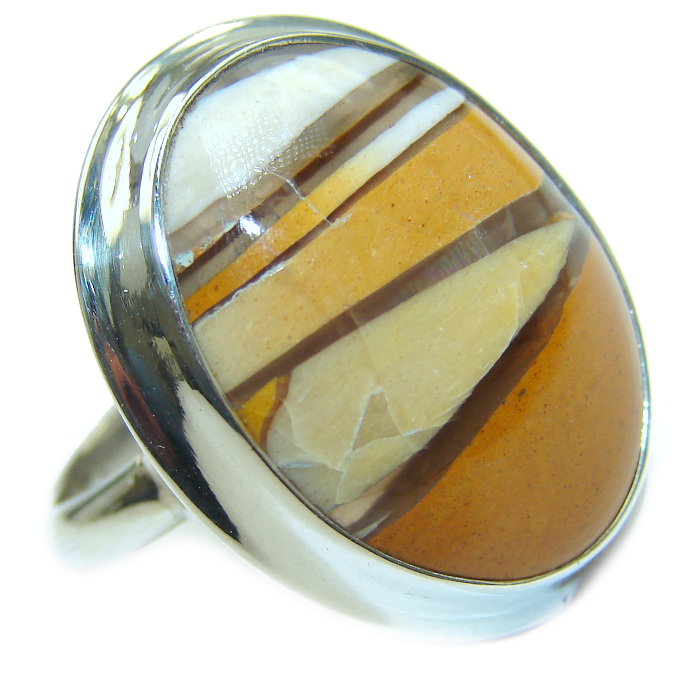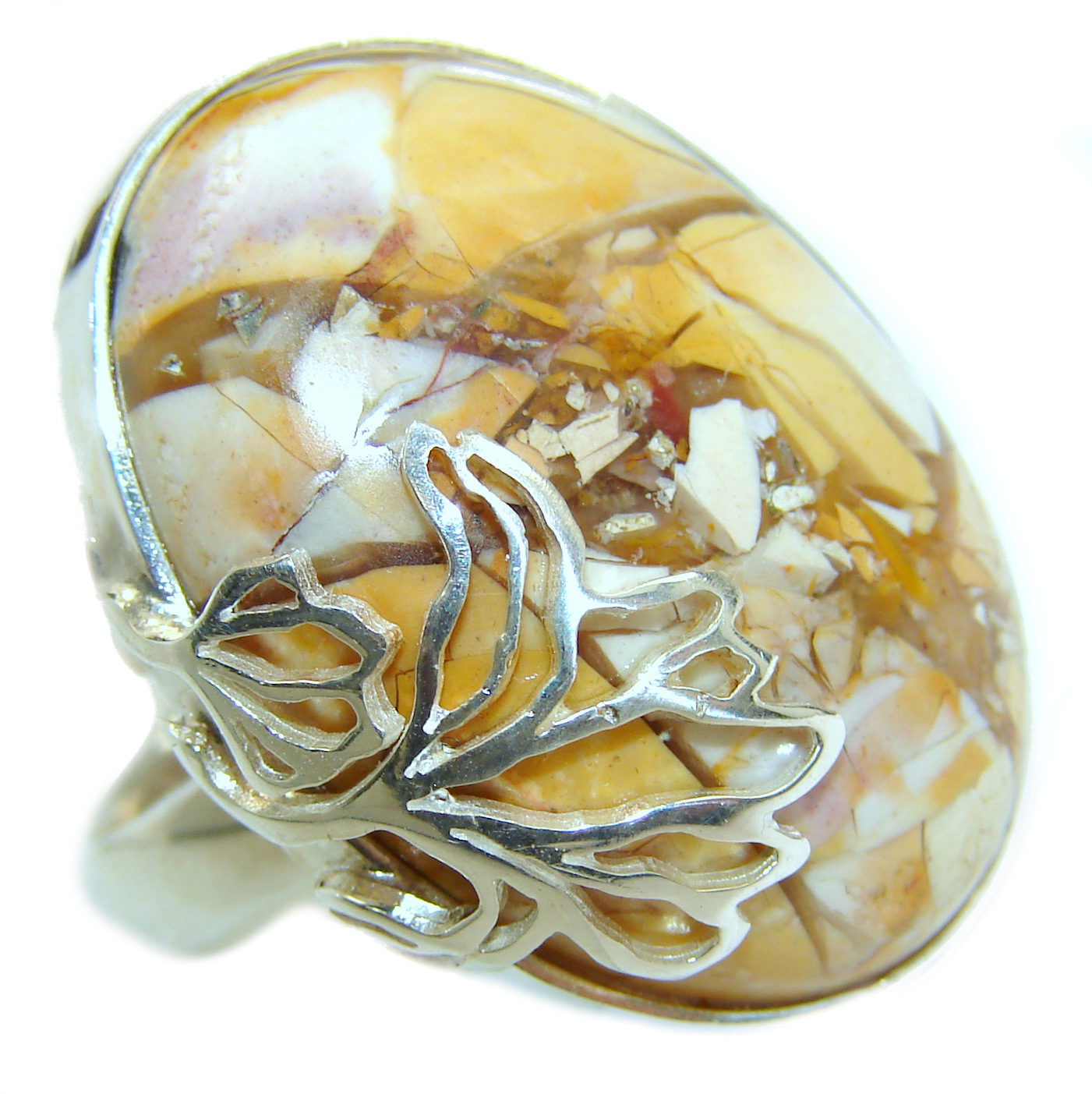 Huge Boho style Mookaite .925 Sterling Silver handmade ring size 8 adjustable