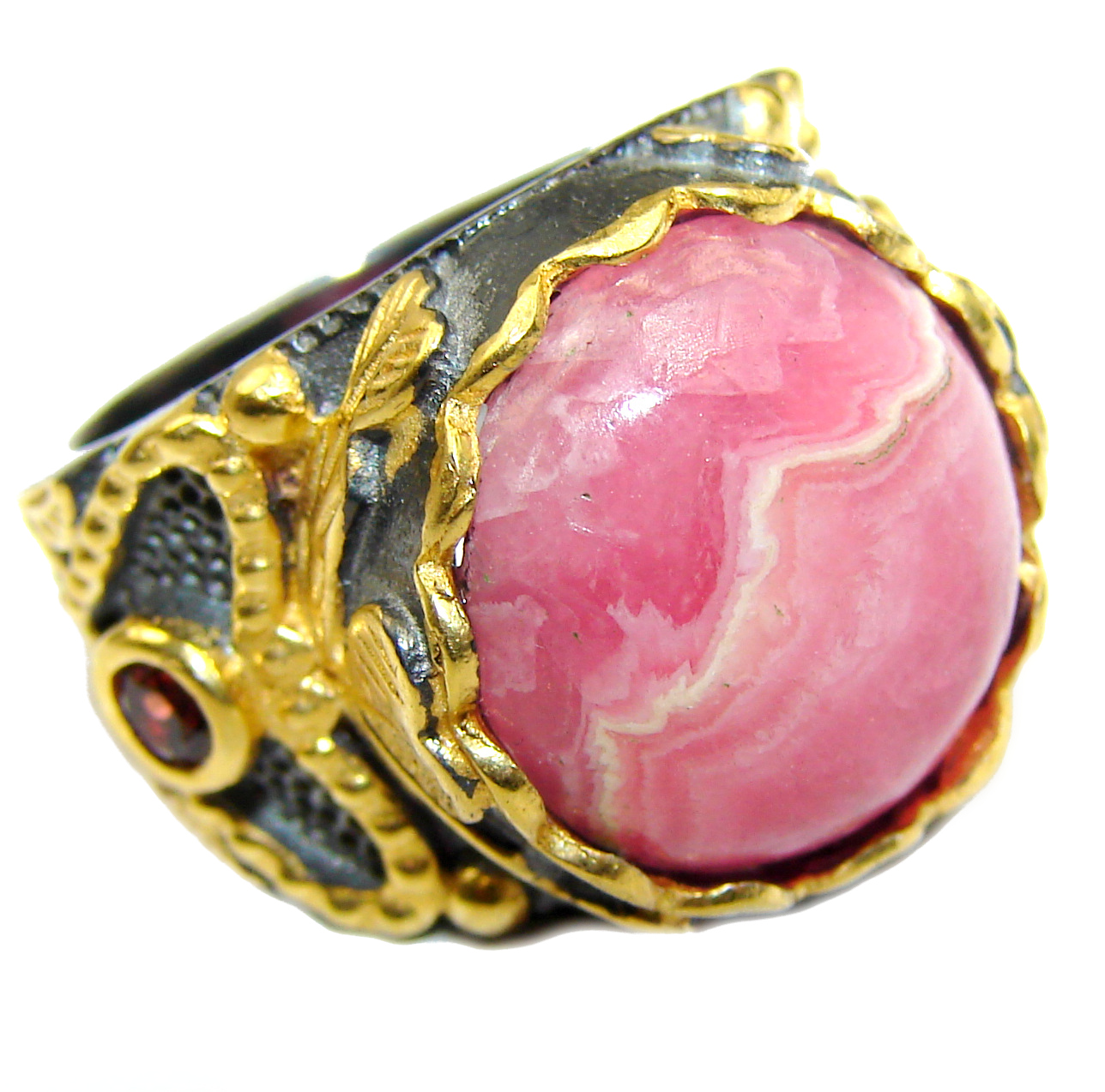 Argentinian Rhodochrosite 18K Gold over .925 Sterling Silver handmade ring size 6 1/4