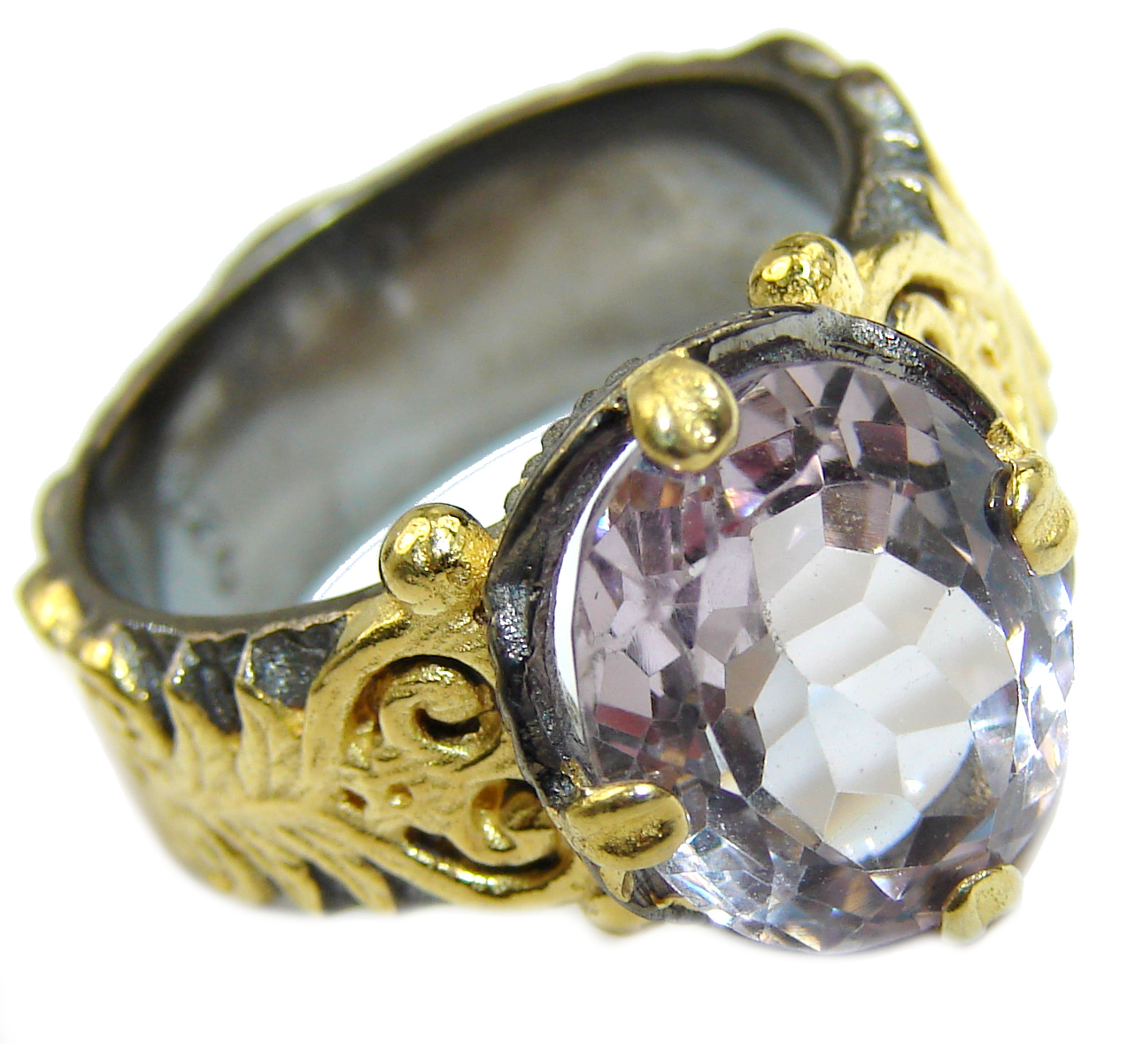 Spectacular genuine Pink Amethyst 14K Gold over .925 Sterling Silver handcrafted Ring size 6