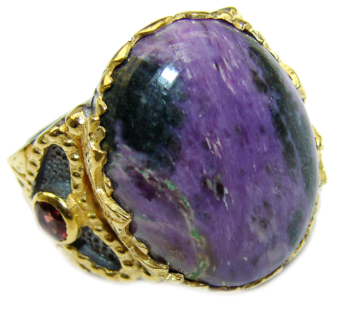 Natural Siberian Charoite 18K Gold Gold over .925 Sterling Silver handcrafted ring size 7