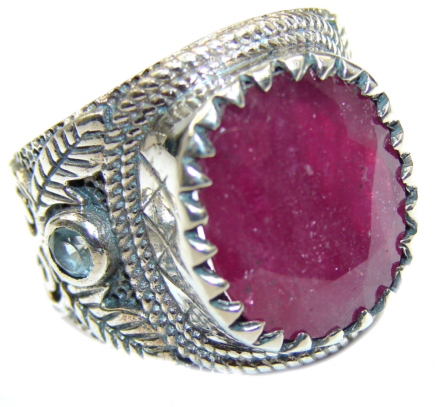 Large genuine Ruby oxidized .925 Sterling Silver Statement Italy made ring; s. 7 1/4