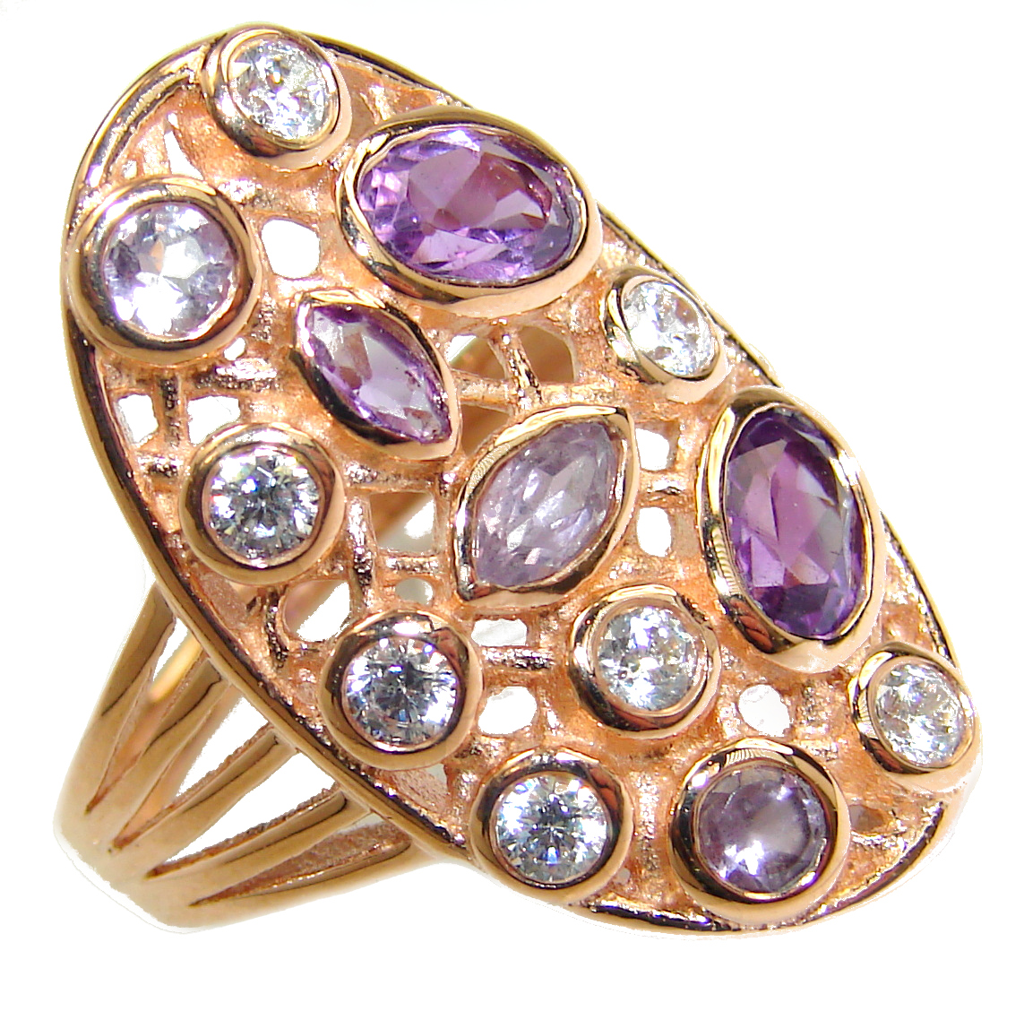 Amethyst Topaz 14K Gold over .925 Sterling Silver handmade Cocktail Ring s. 7
