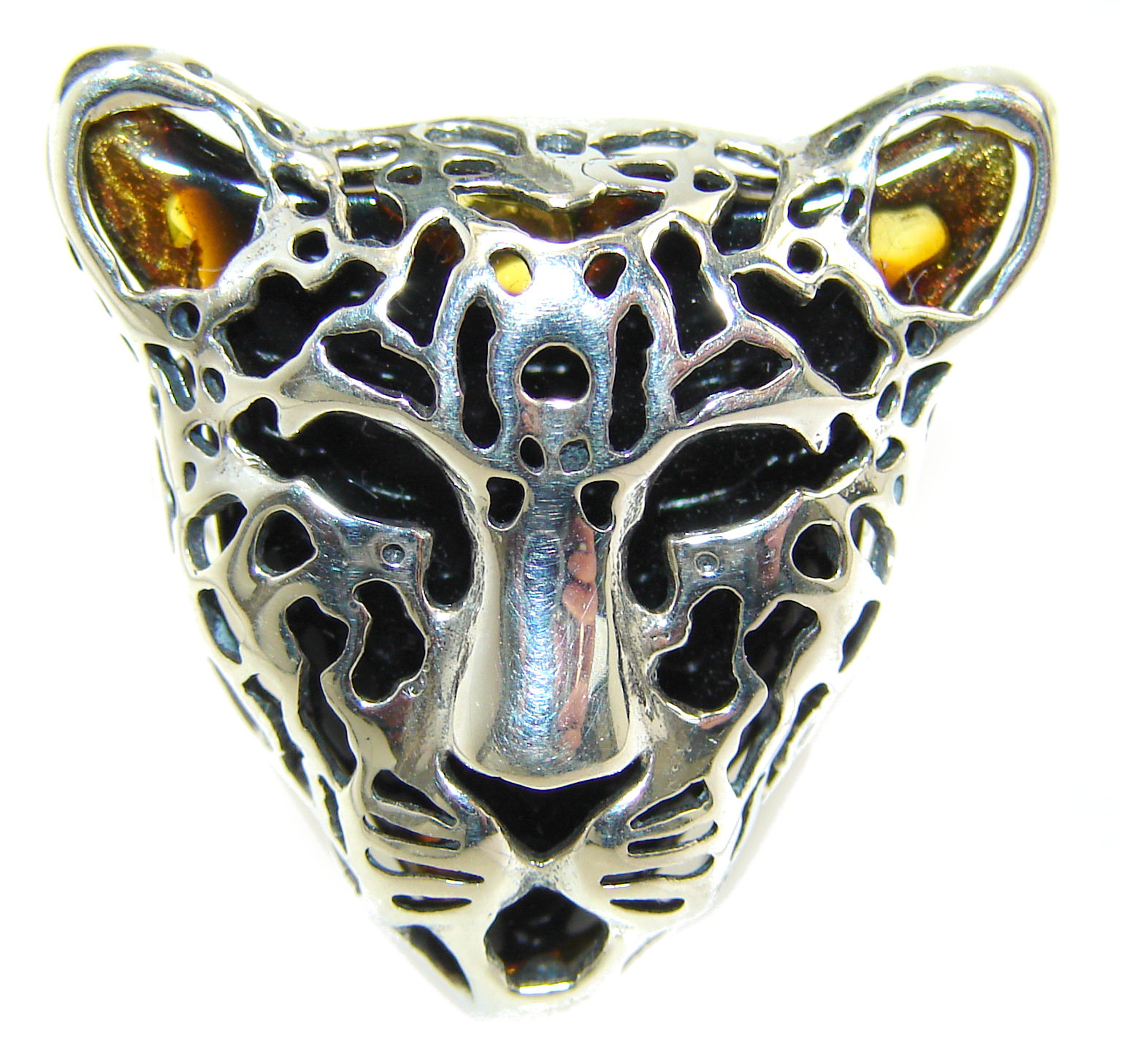 Cheetah authentic Baltic Amber .925 Sterling Silver handmade Statement Ring s. 7 adjustable