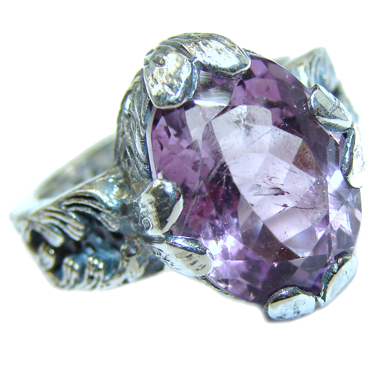 Vintage Style Amethyst .925 Sterling Silver handmade Cocktail Ring s. 6 1/4