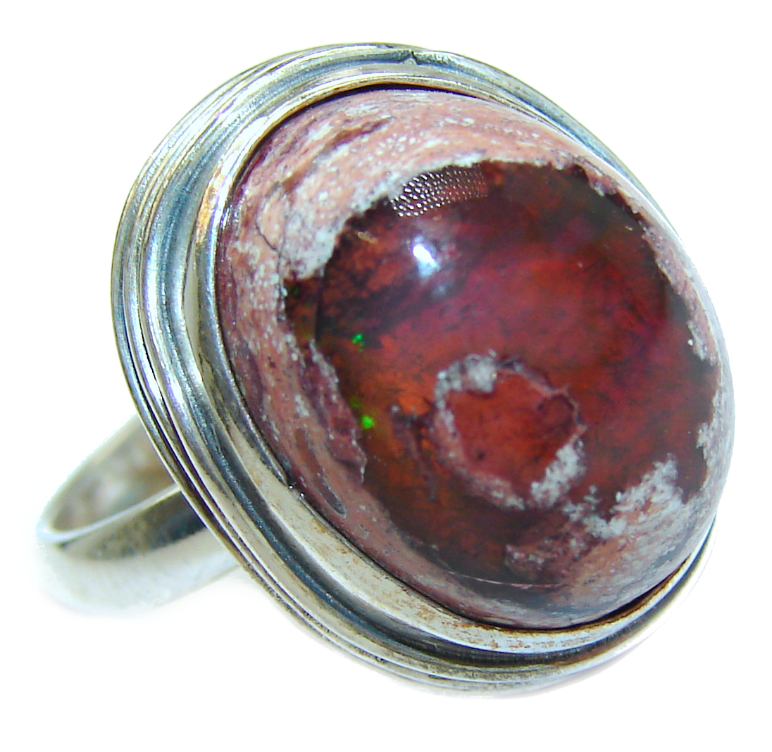 Genuine Mexican Opal .925 Sterling Silver handmade Ring size 8