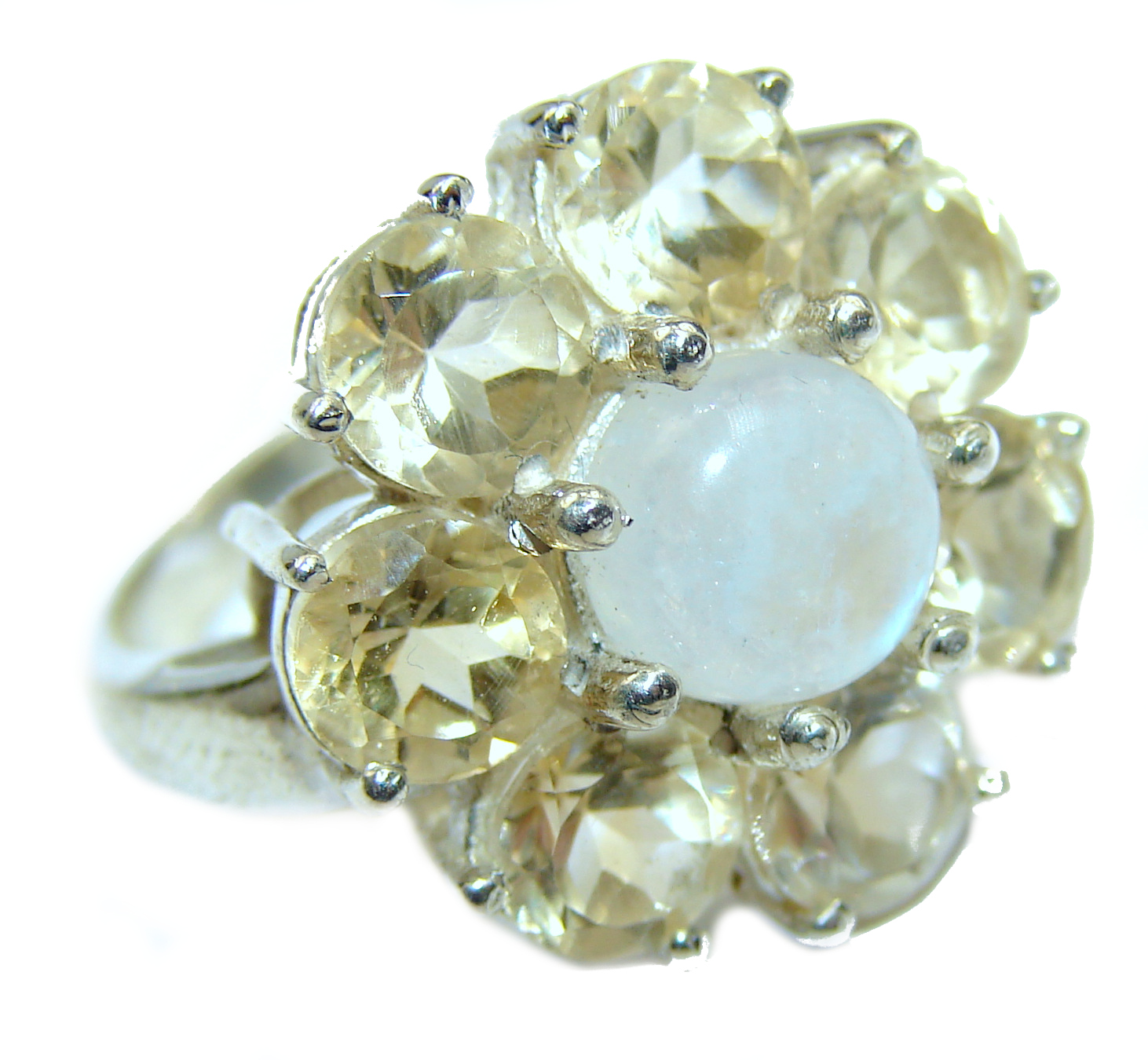 Cute Flower Moonstone .925 Sterling Silver handmade Poison Ring size 8
