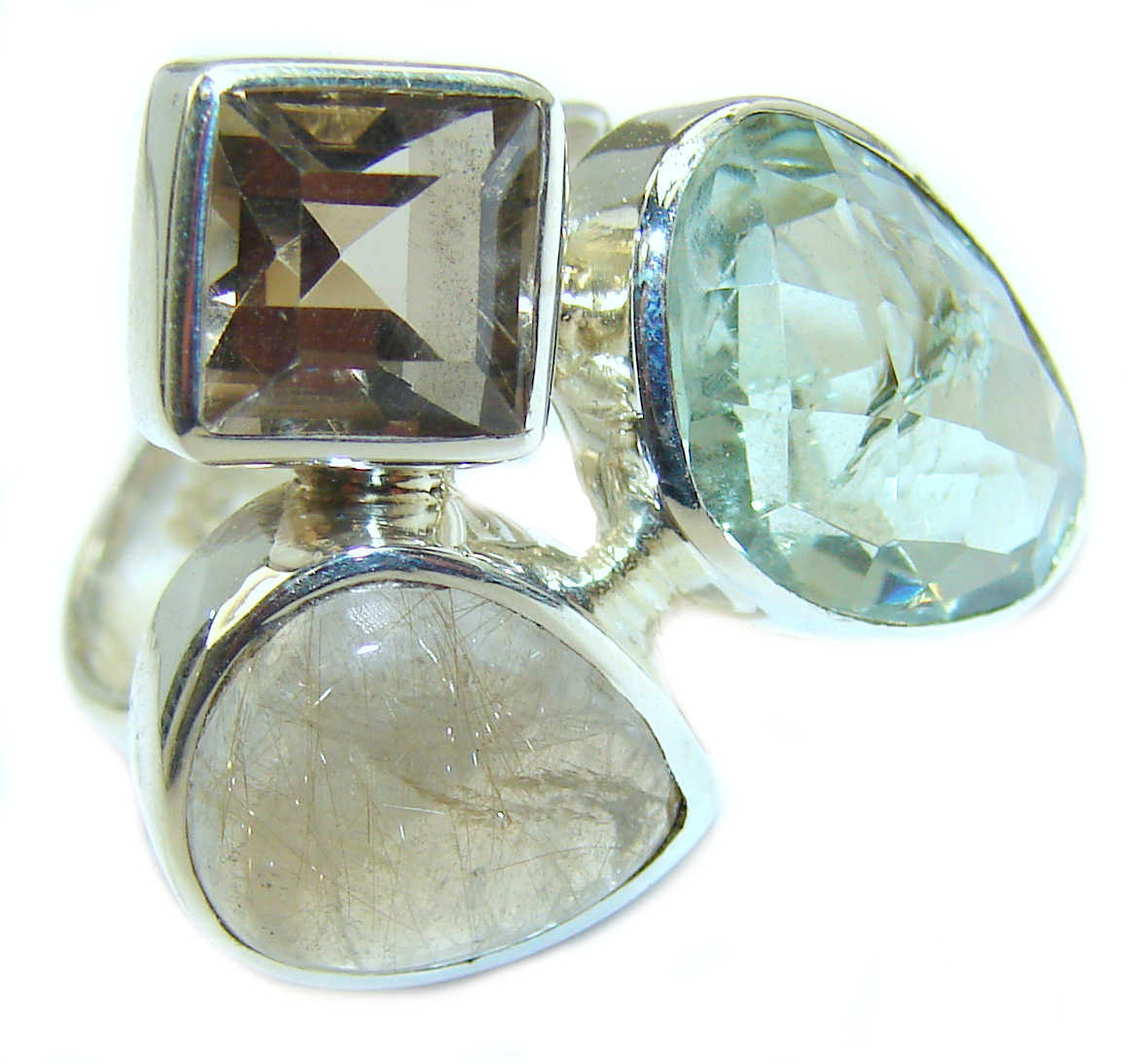 Natural Green Amethyst .925 Sterling Silver handmade Cocktail Ring s. 6 adjustable