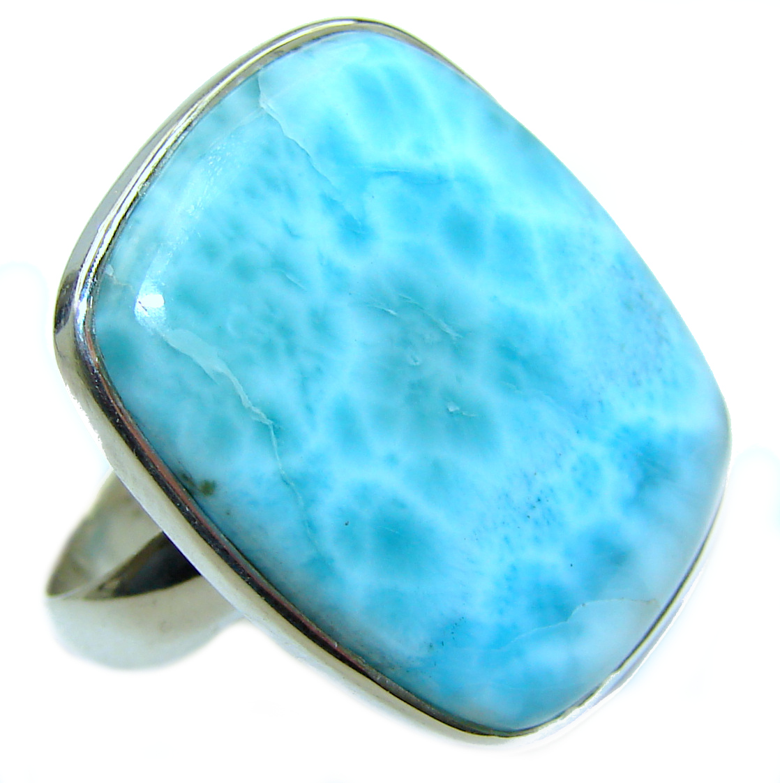 Natural Larimar .925 Sterling Silver handcrafted Ring s. 7 adjustable