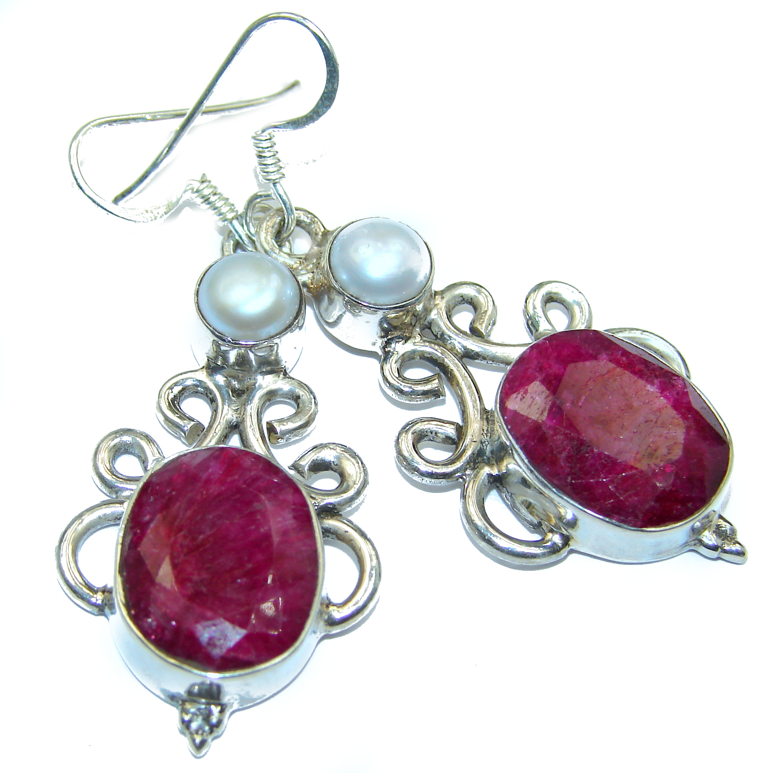 Spectacular genuine Ruby .925 Sterling Silver handcrafted earrings