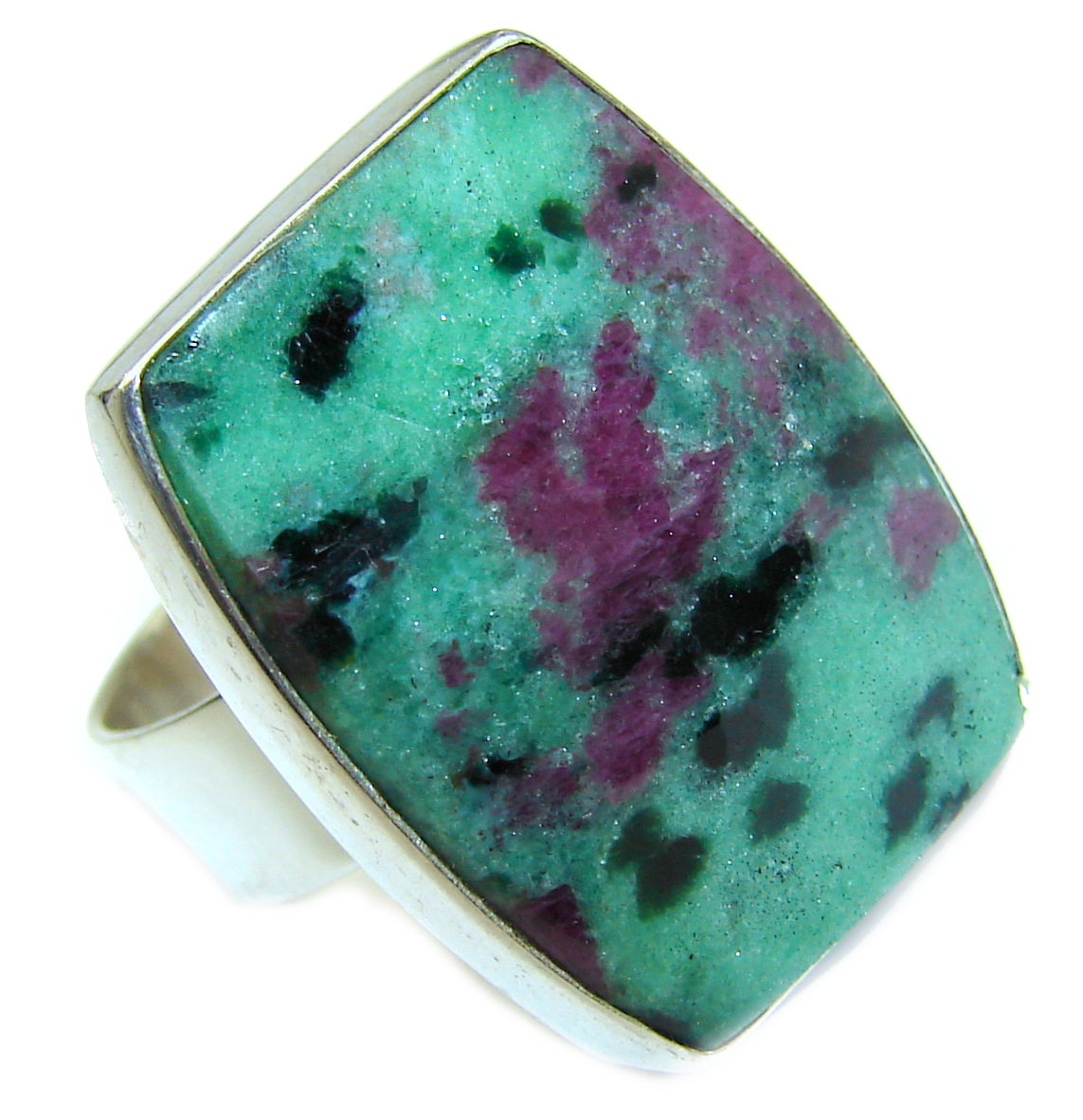 Ruby in Zoisite .925 Sterling Silver handmade Cocktail Ring s. 6 adjustable
