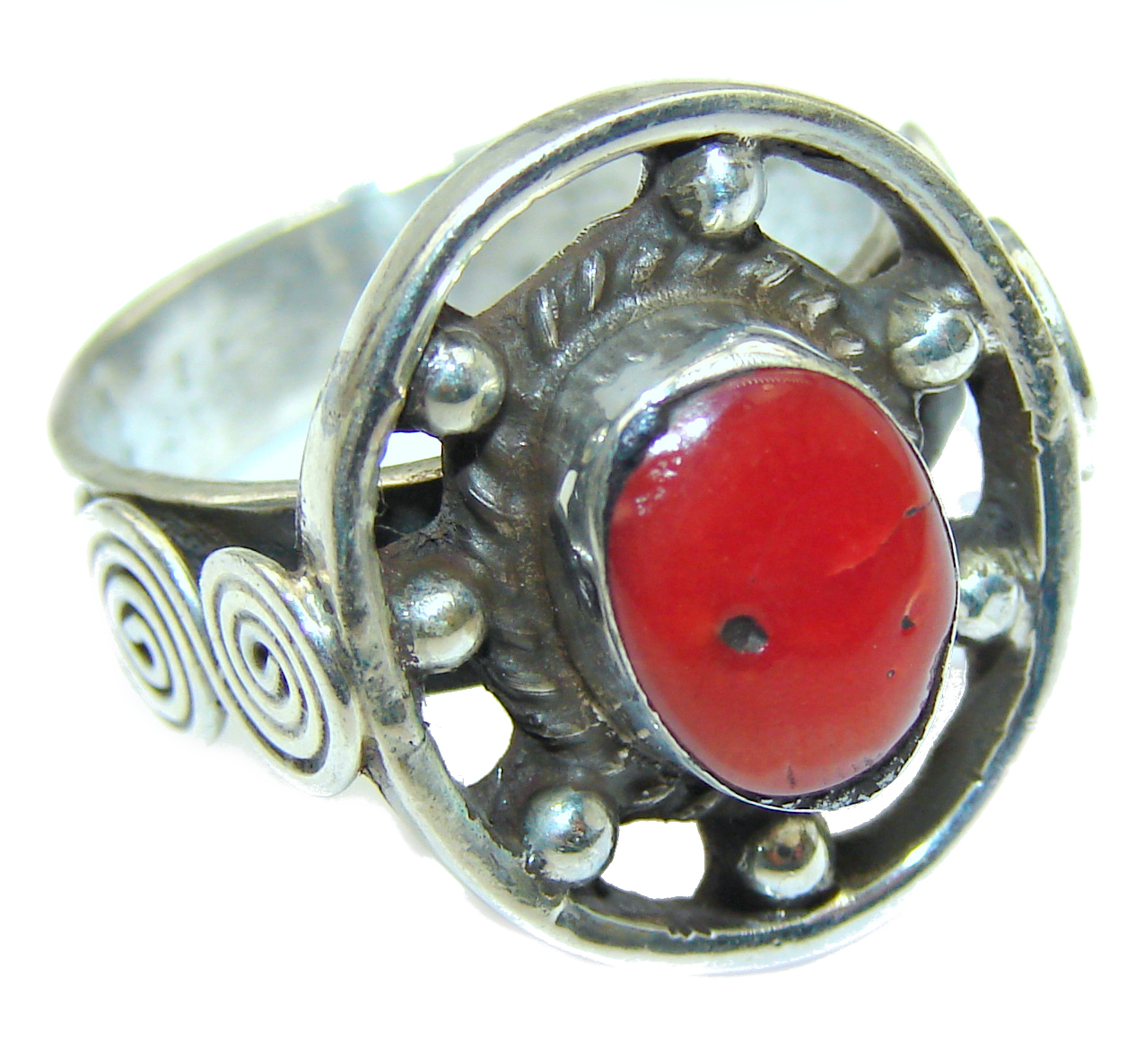 Natural Fossilized Coral .925 Sterling Silver handmade ring s. 8