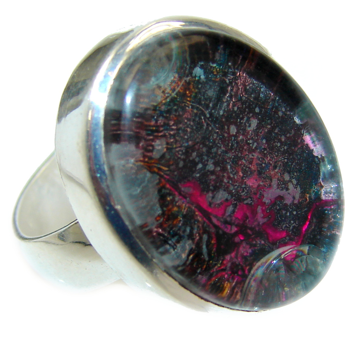 Dichroic Glass .925 Sterling Silver handmade ring size 7 1/4