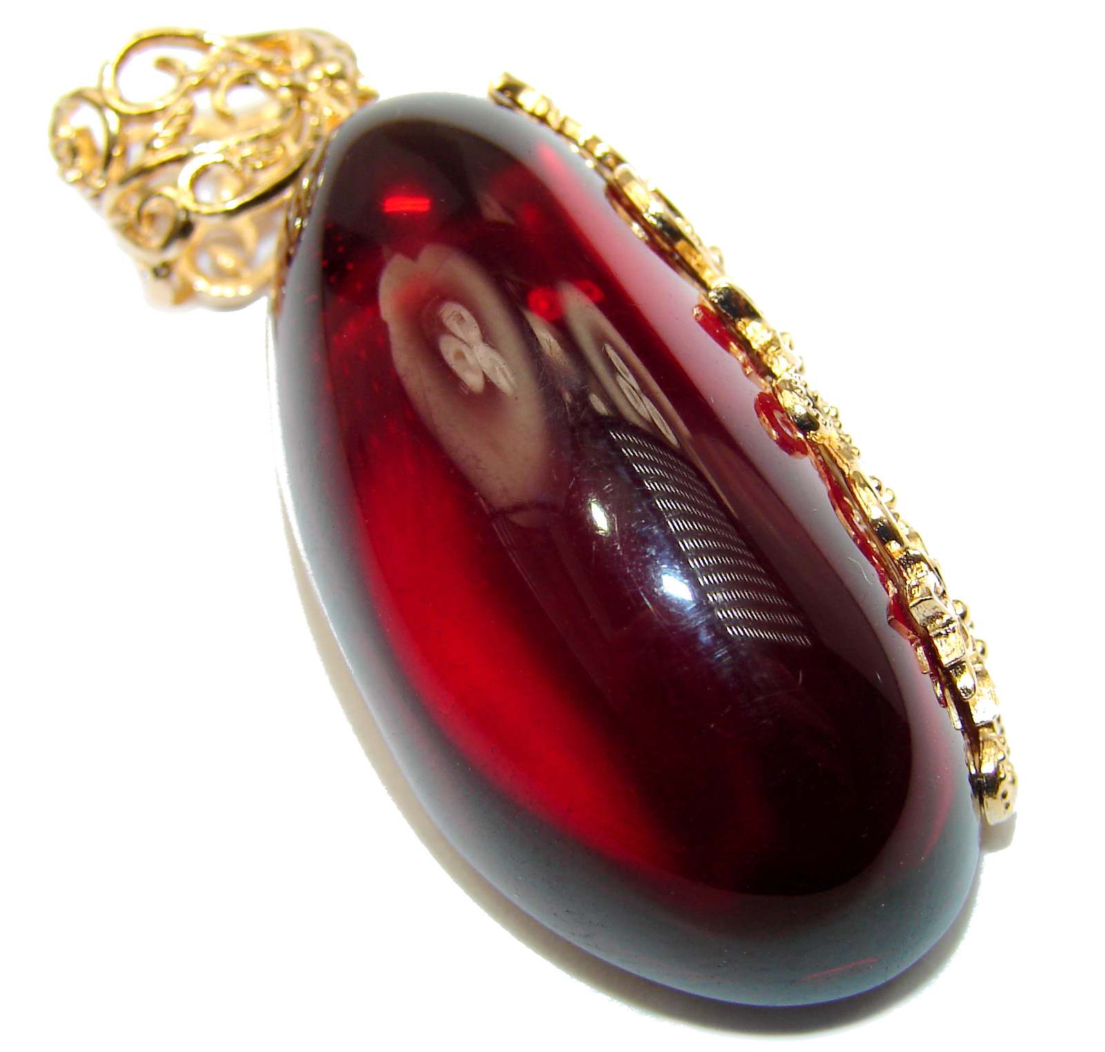 Huge Natural Baltic Amber 18K Gold over .925 Sterling Silver handmade Pendant