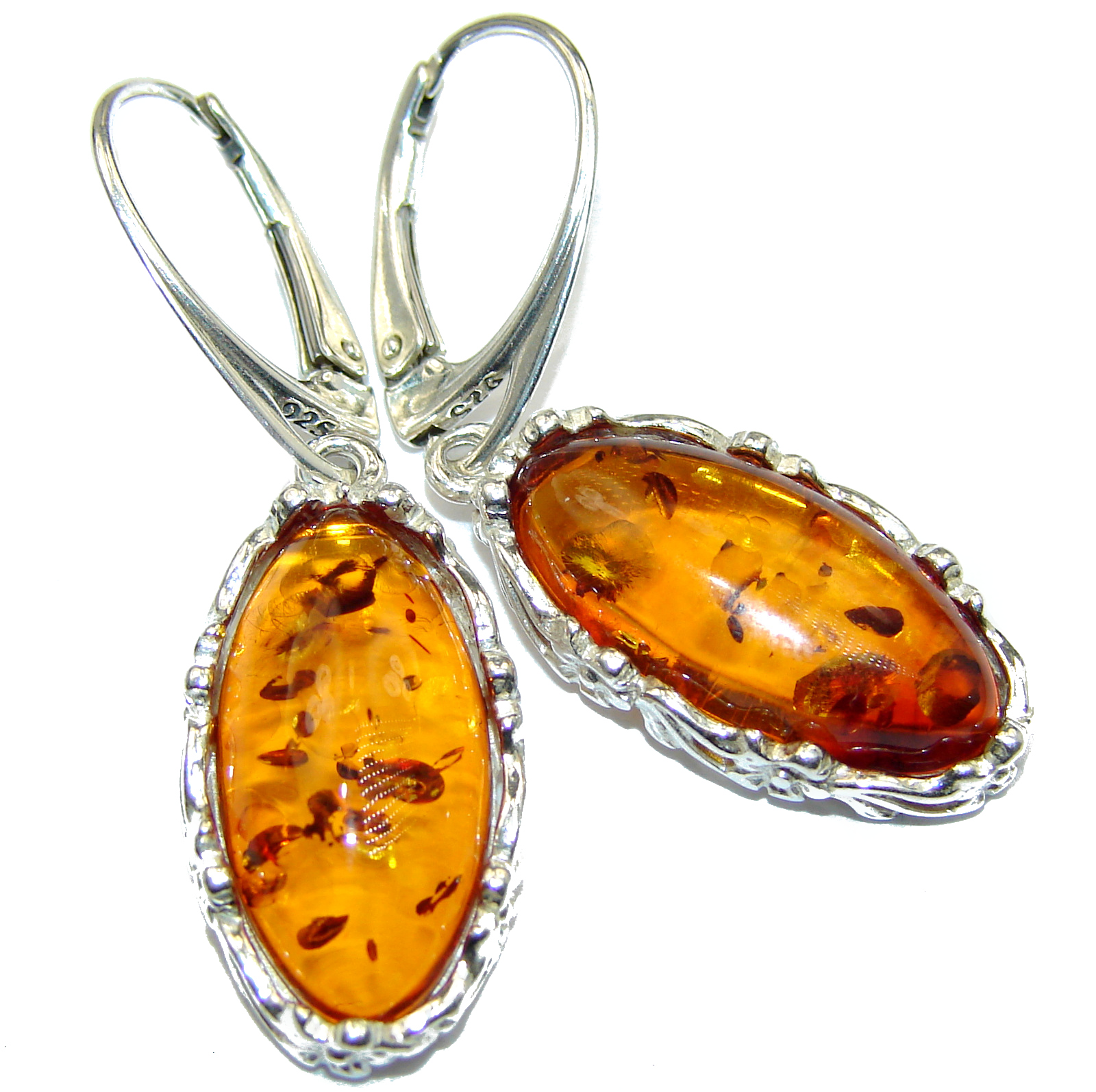 Genuine Baltic Amber .925 Sterling Silver handcrafted Earrings