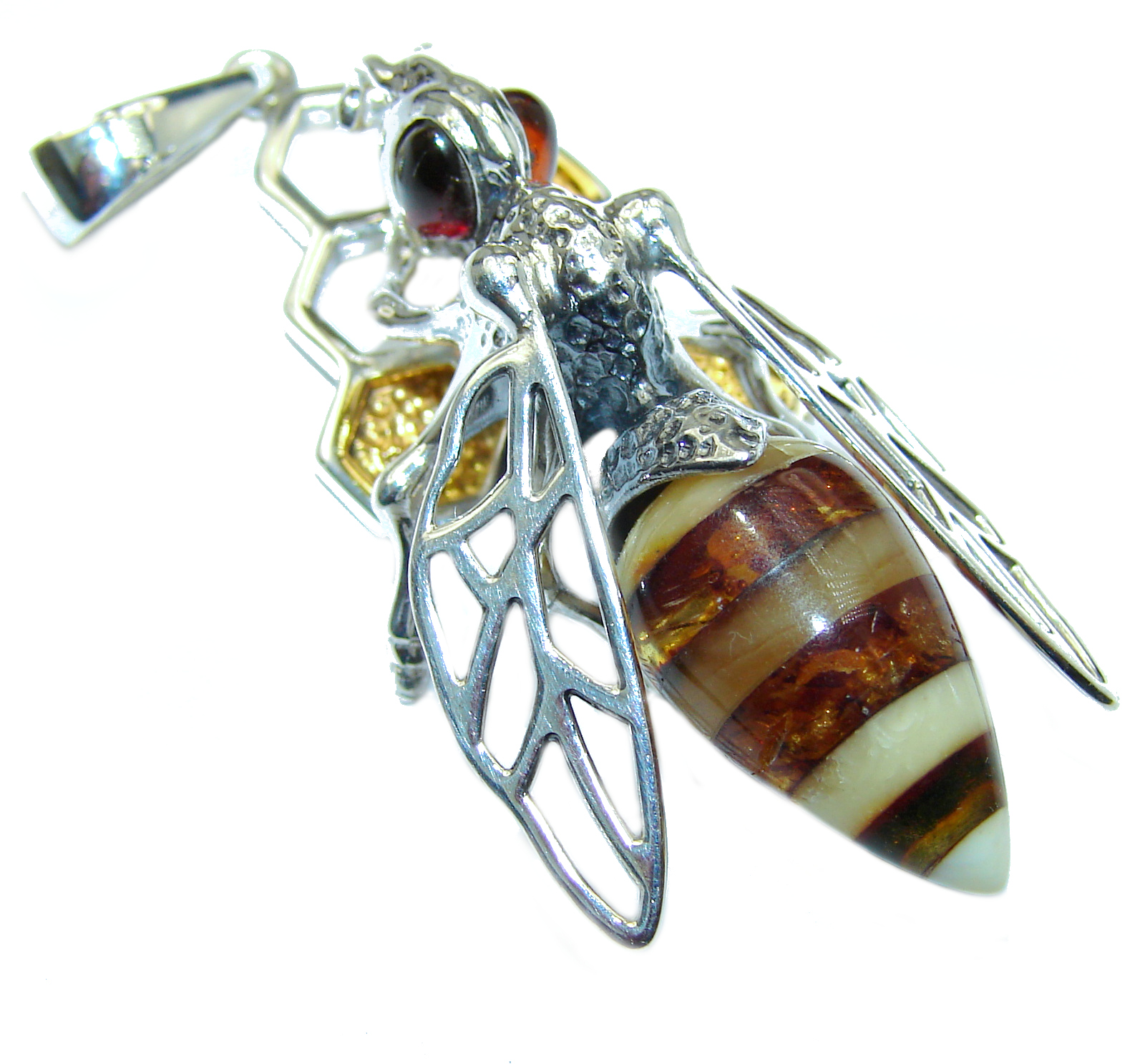 Masterpiece Honey Bee Baltic Polish Amber .925 Sterling Silver Handmade Pendant