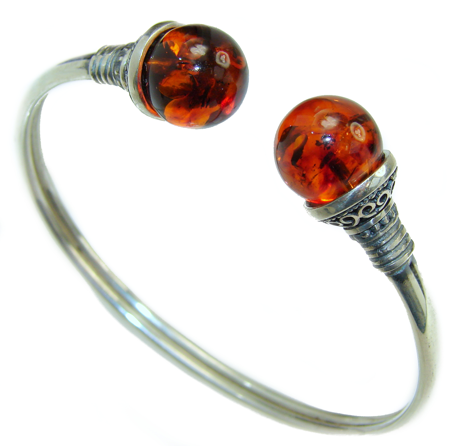 Vintage Design Genuine Polish Amber .925 Sterling Silver handamde Bracelet / Cuff