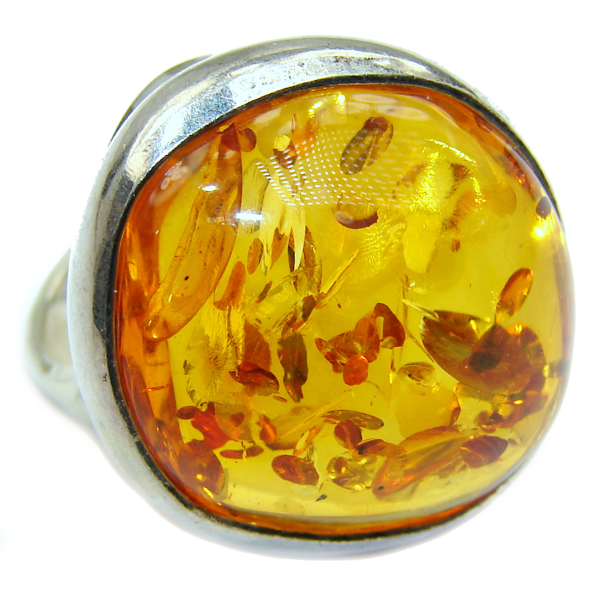Authentic Baltic Amber .925 Sterling Silver handcrafted ring; s 8 adjustable