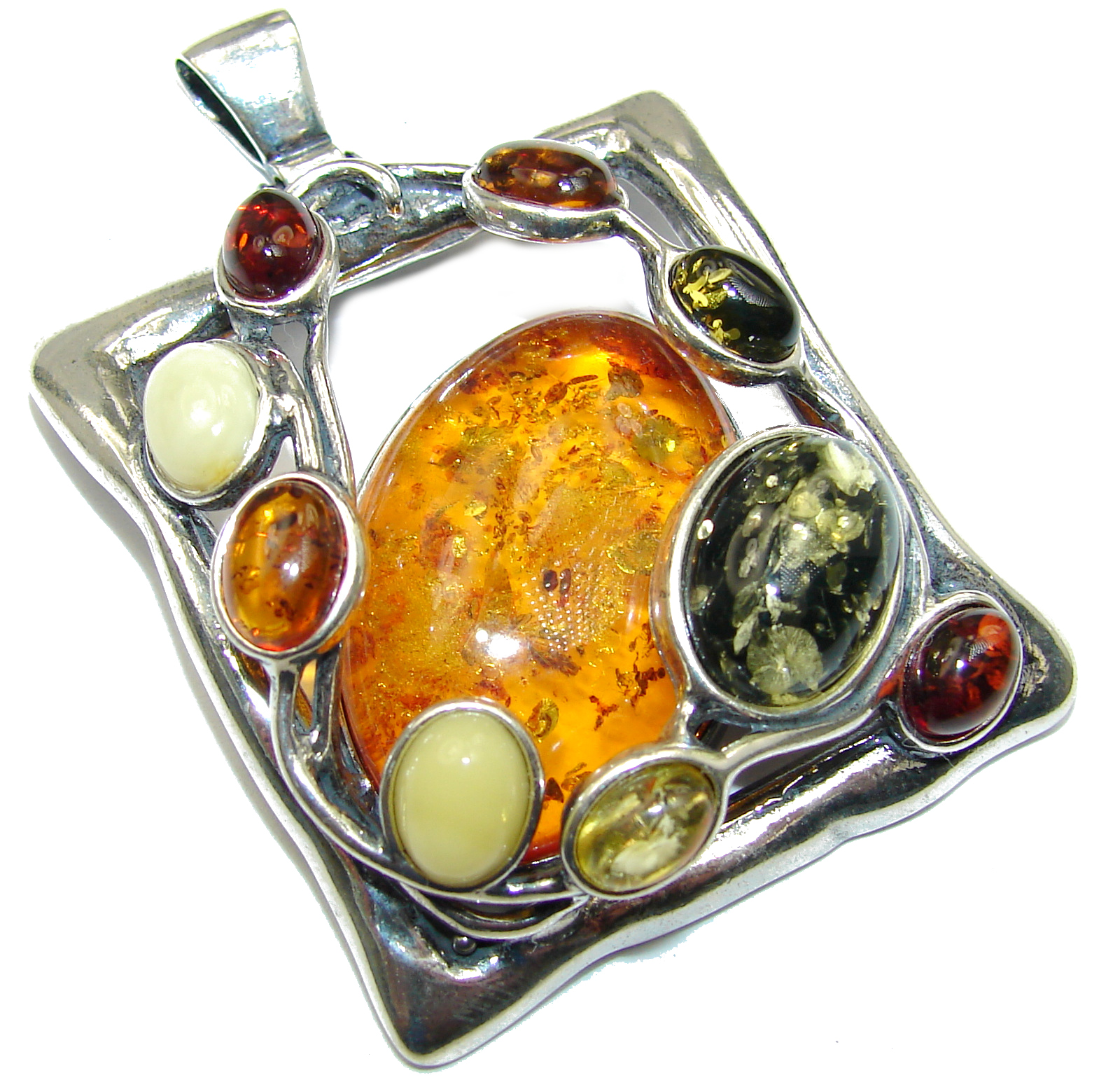 Huge Natural Baltic Amber .925 Sterling Silver handmade Pendant