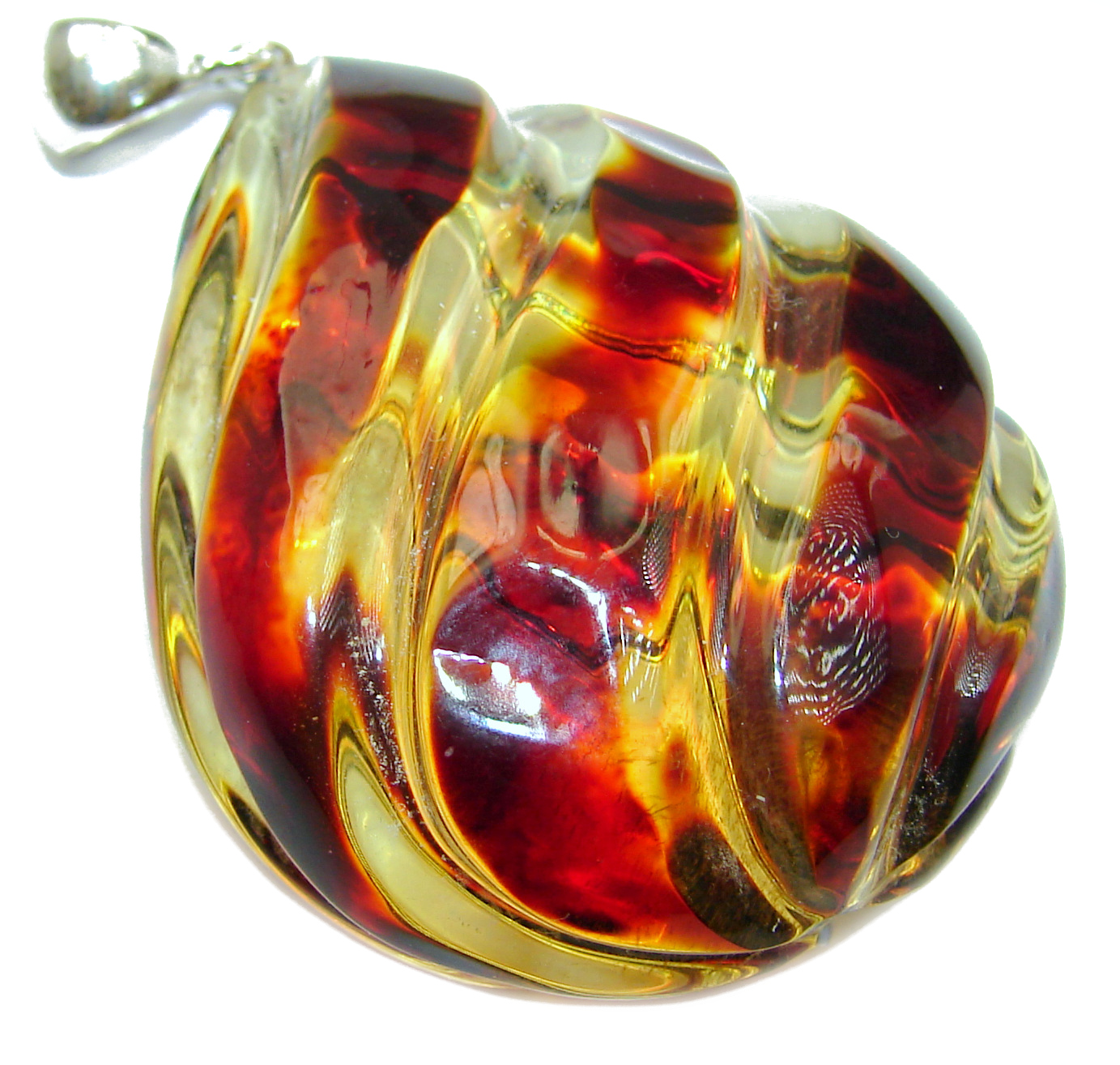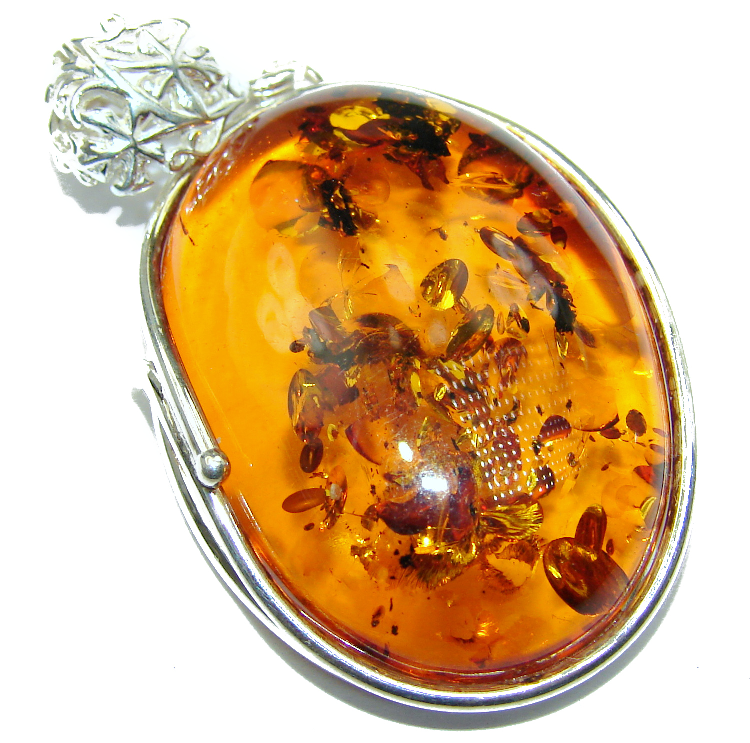 Huge Sophisticated pattern Authentic carved Baltic Amber .925 Sterling Silver handmade Pendant