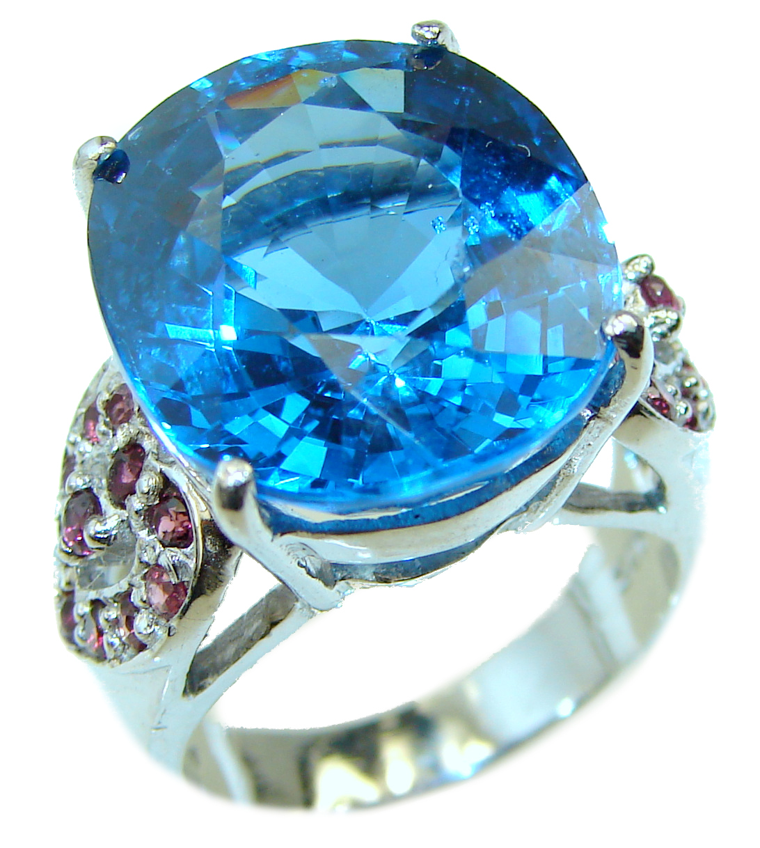Large Electric Blue Topaz .925 Sterling Silver handmade Ring size 7 1/2