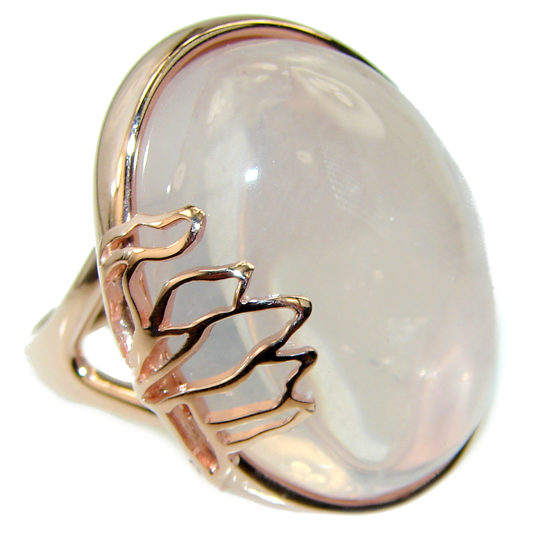 Large 22.2 carat Rose Quartz 14K Gold over .925 Sterling Silver brilliantly handcrafted ring s. 6 1/4
