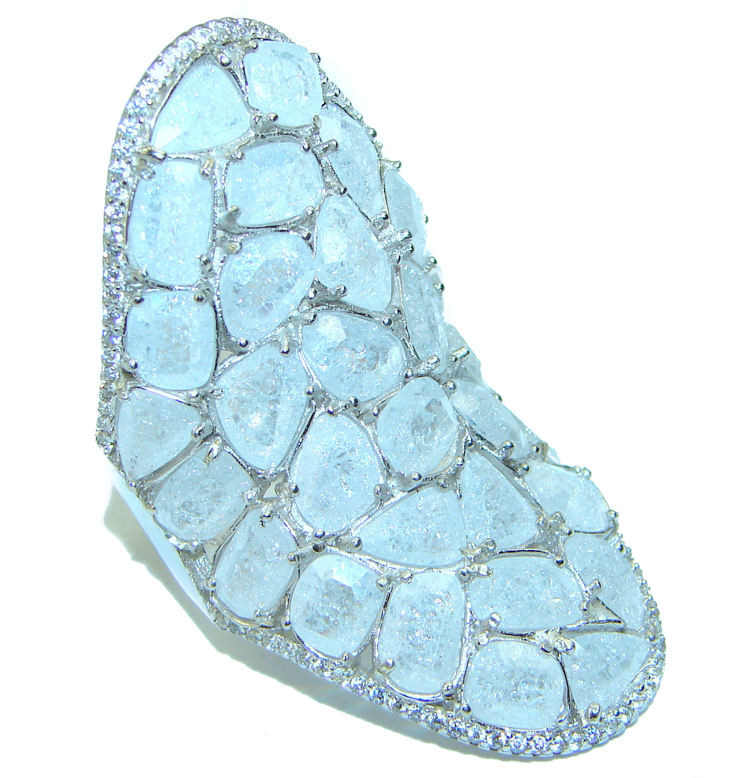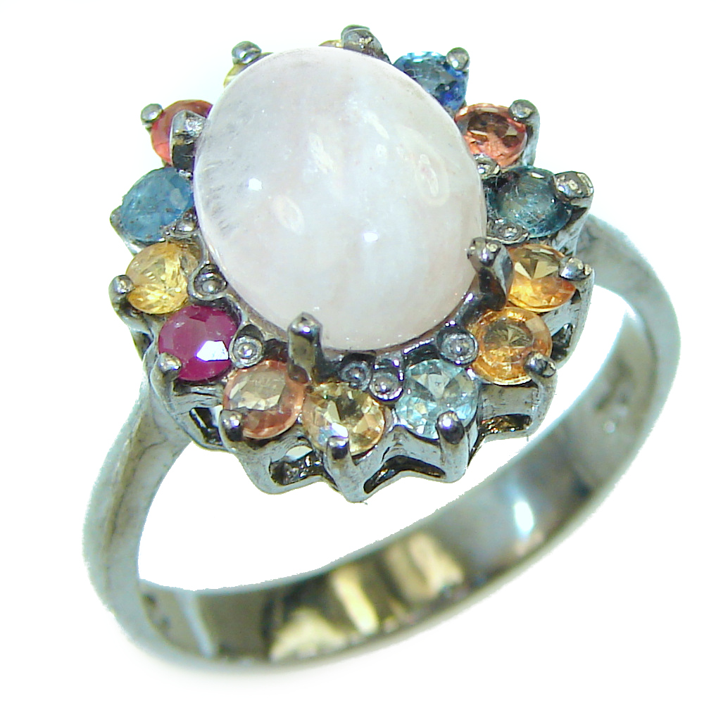 Huge Special faceted Fire Moonstone .925 Sterling Silver handmade ring s. 7 3/4