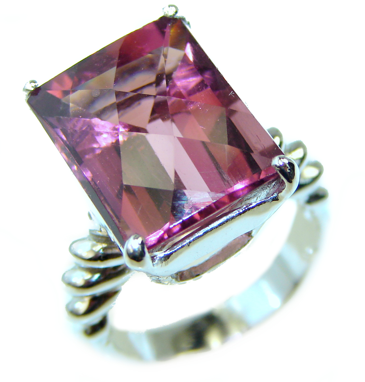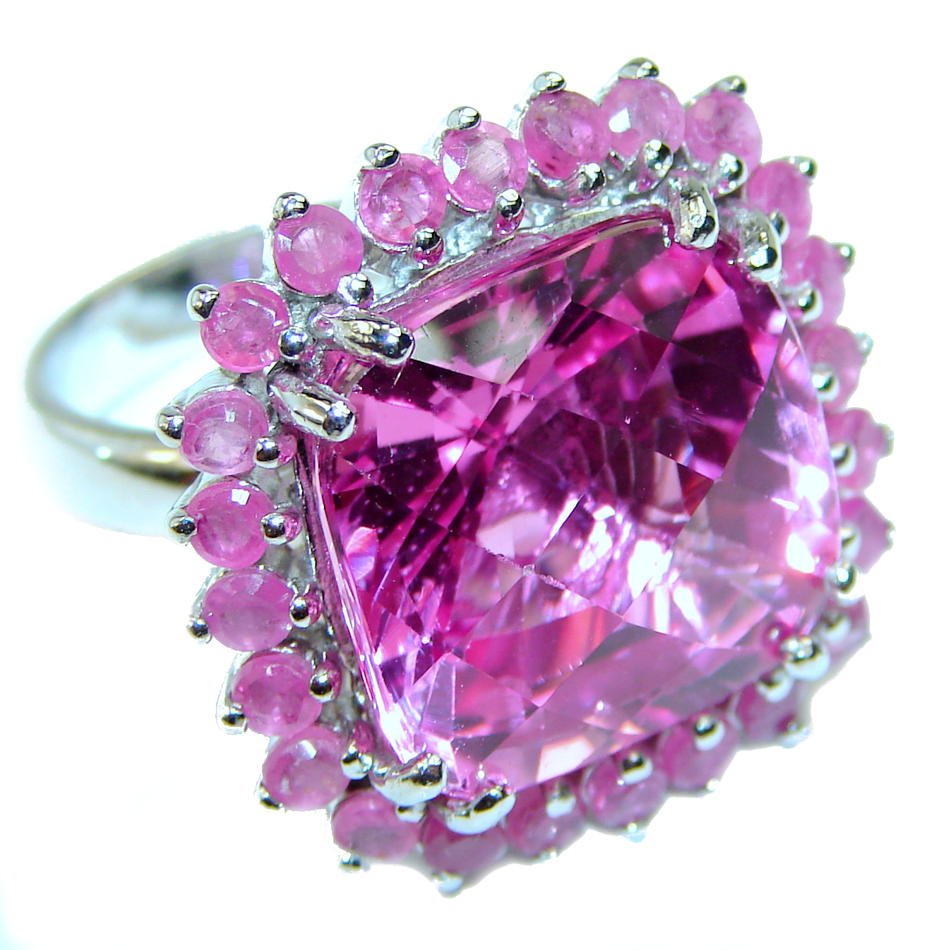 27.5 carat Really Hot Pink Topaz .925 Silver handcrafted Huge Cocktail Ring s. 6
