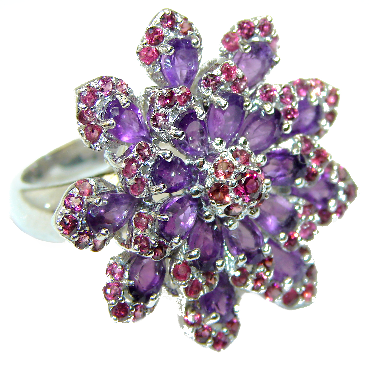 Spectacular Amethyst .925 Sterling Silver Handcrafted Large Ring size 8 1/4