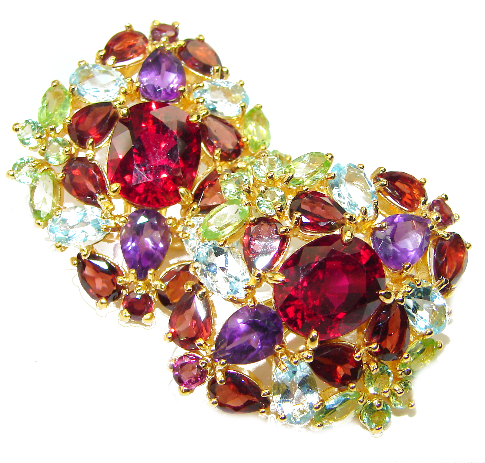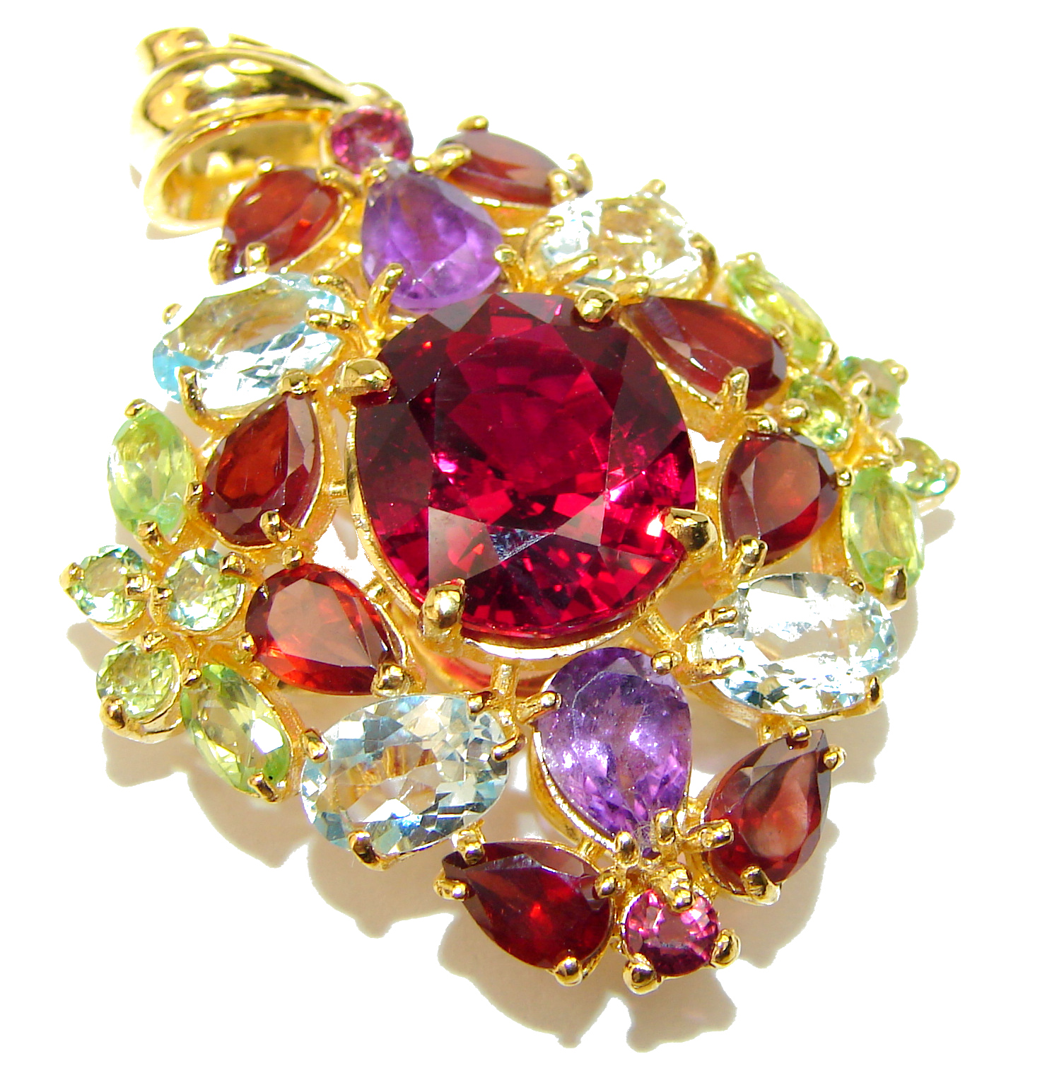 SPECTACULAR 25.5 carat Deep Red Topaz 14K Gold over .925 Sterling Silver handmade Pendant