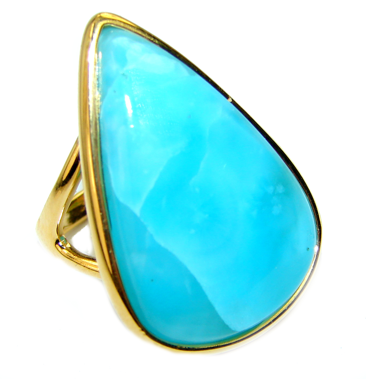 Precious Blue Larimar 14K Gold over .925 Sterling Silver handmade ring size 6 1/4