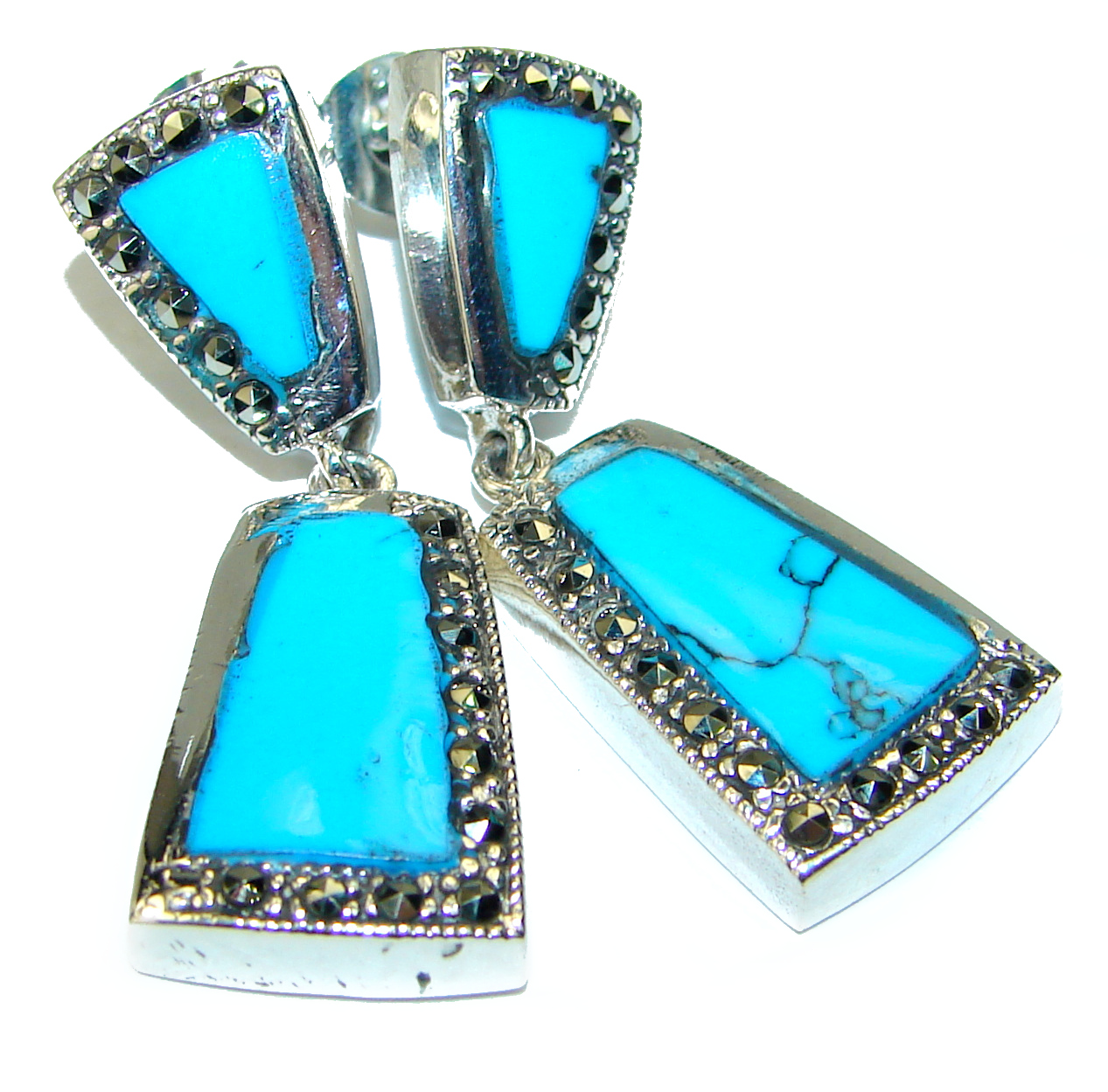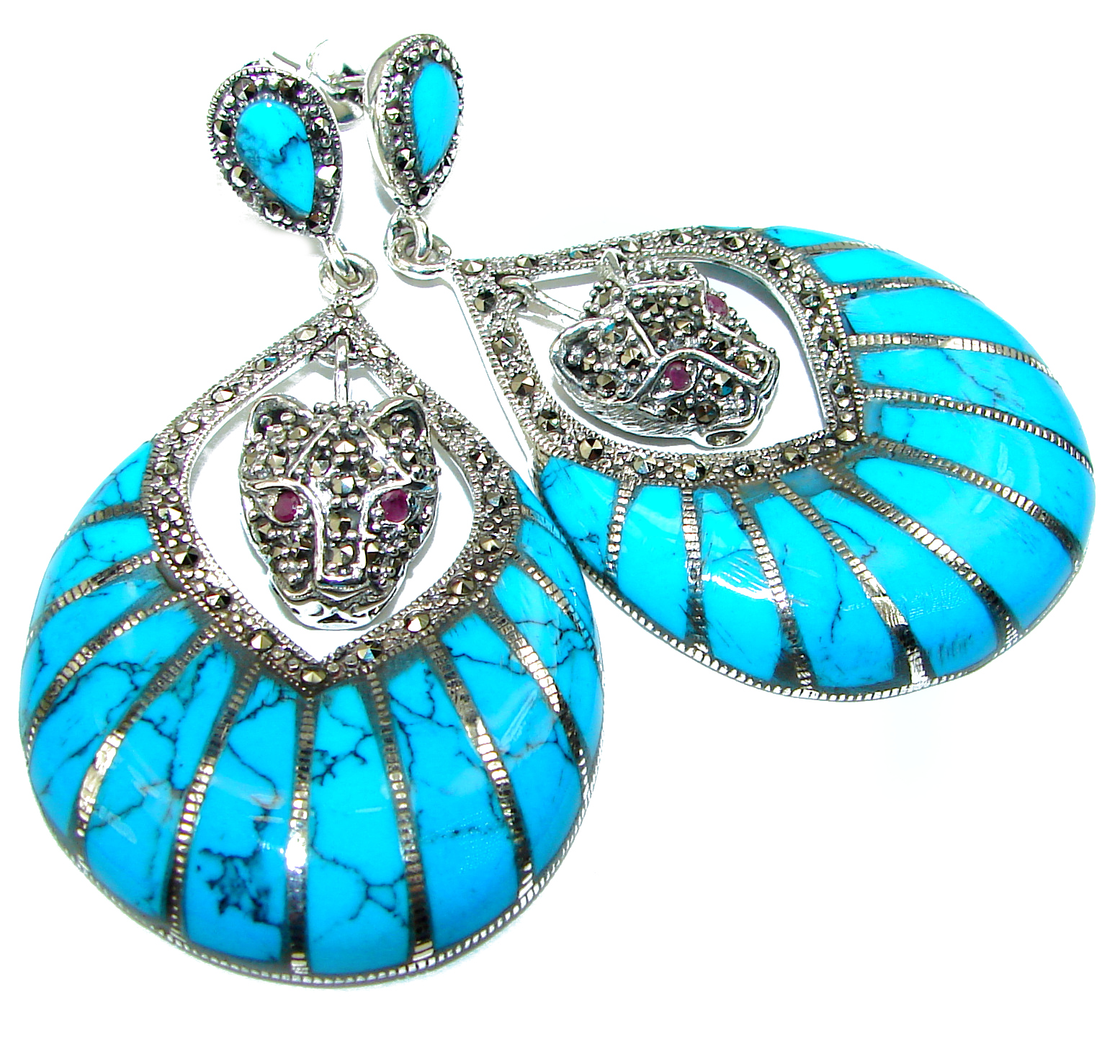 Spectacular Panthers Blue Turquoise .925 Sterling Silver handcrafted Earrings