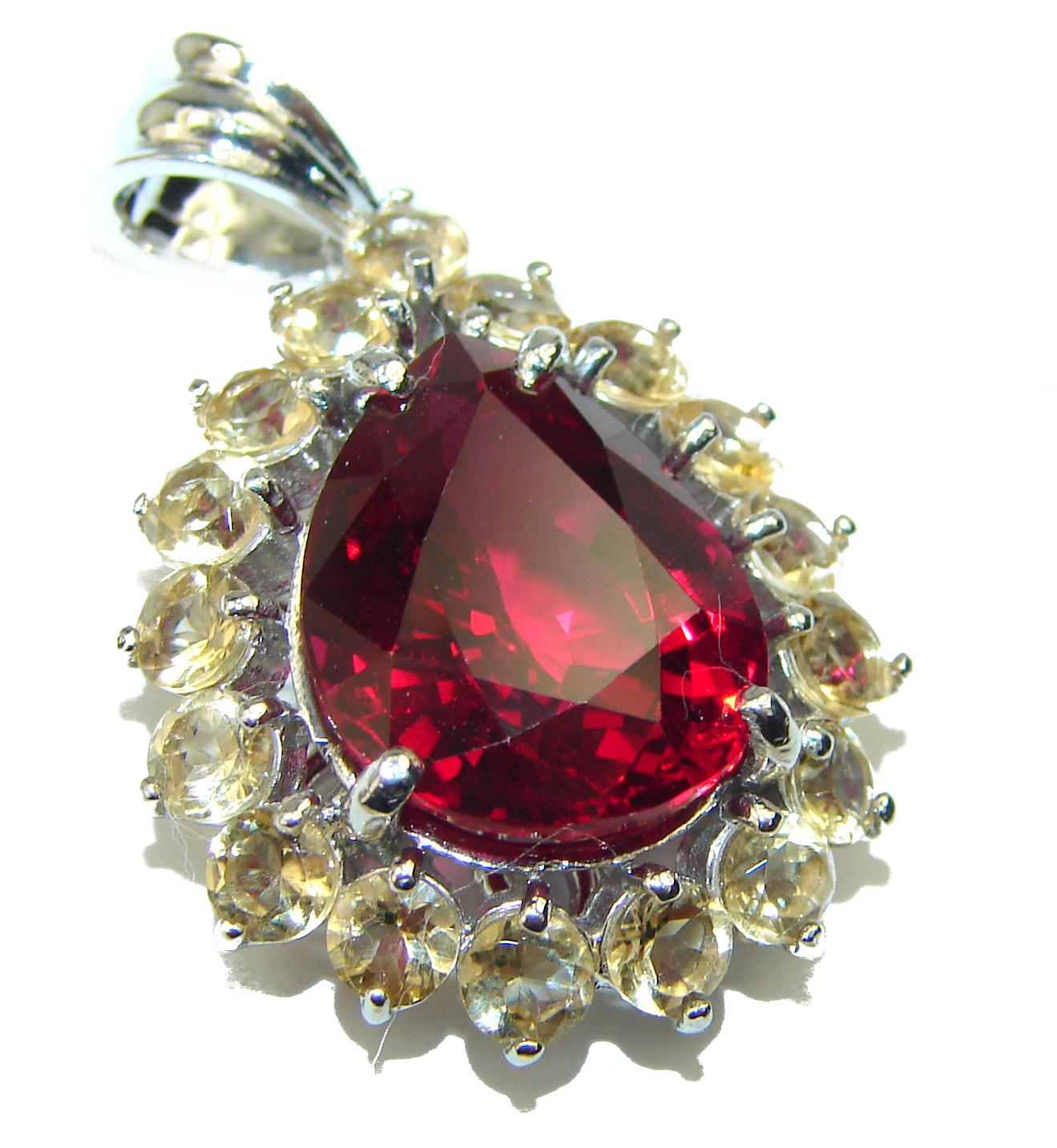 12.5 carat Deep Red Topaz .925 Sterling Silver handmade Pendant