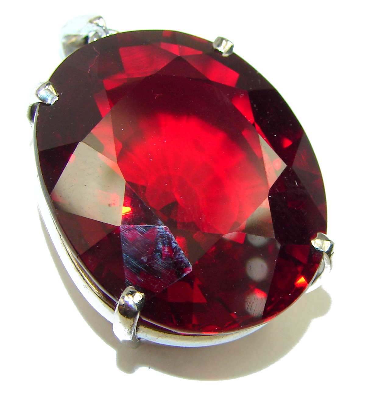 Oval cut 36.5 carat Deep Red Topaz .925 Sterling Silver handmade Pendant