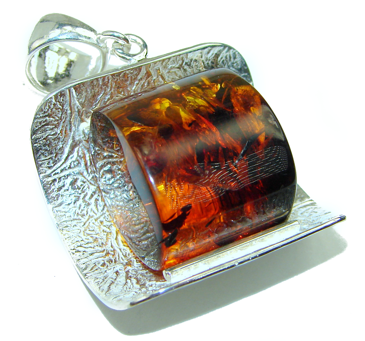 Massive Baltic Amber .925 Sterling Silver handmade Pendant