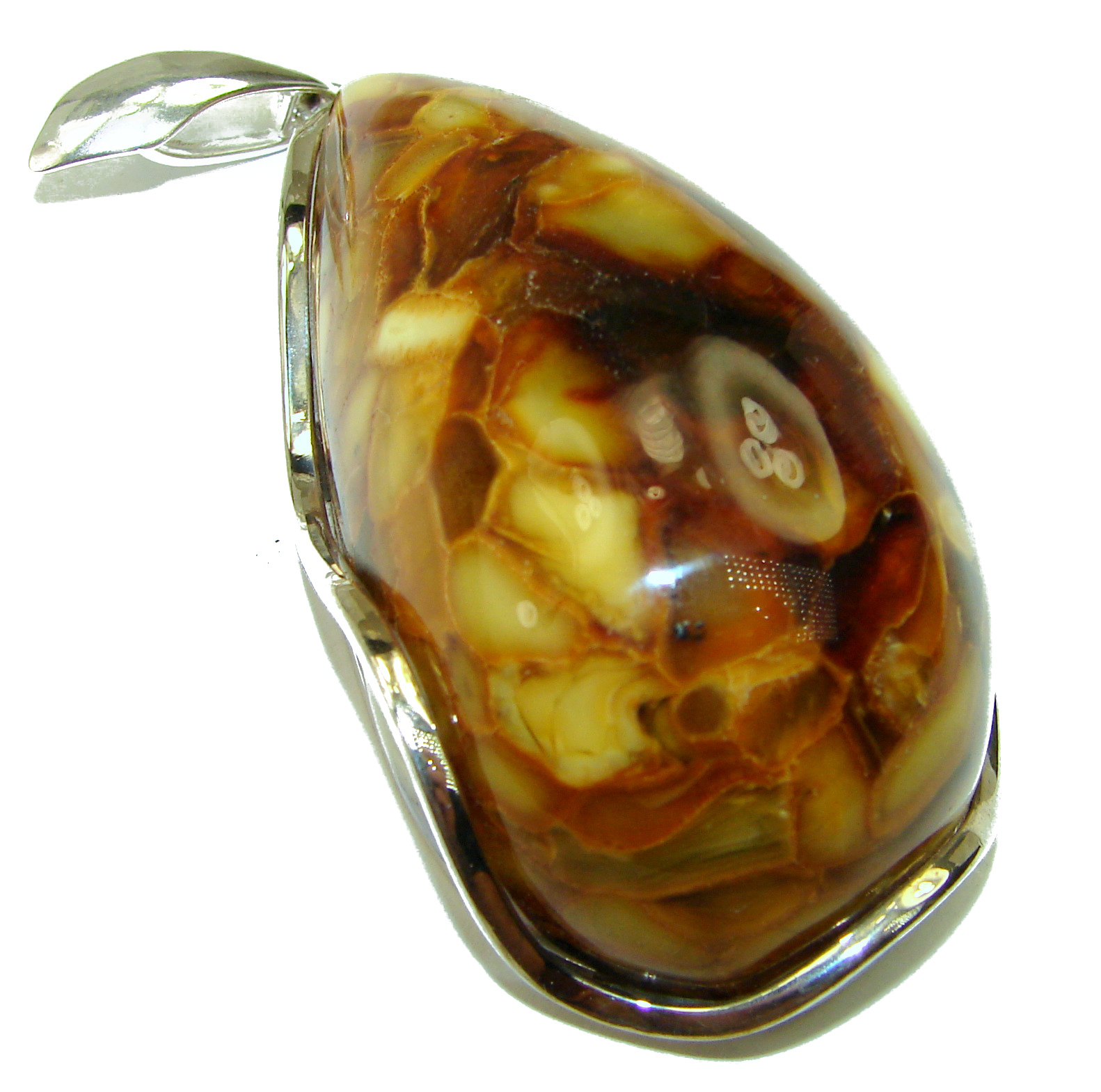 Huge Baltic Amber .925 Sterling Silver handmade Pendant