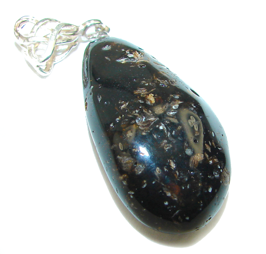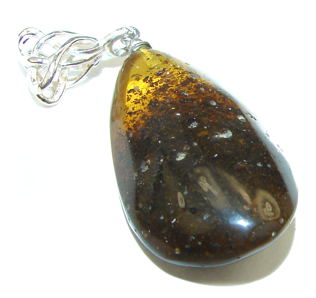 Dark Baltic Amber .925 Sterling Silver handmade Pendant