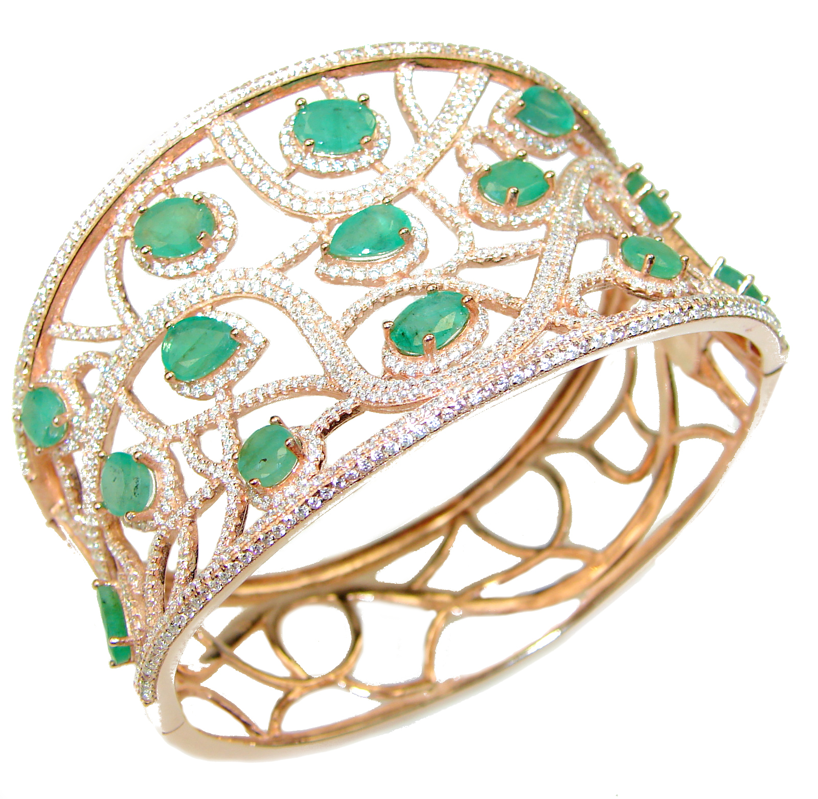 Spectacular authentic Emerald 18K Rose Gold over .925 Sterling Silver handmade bangle Bracelet