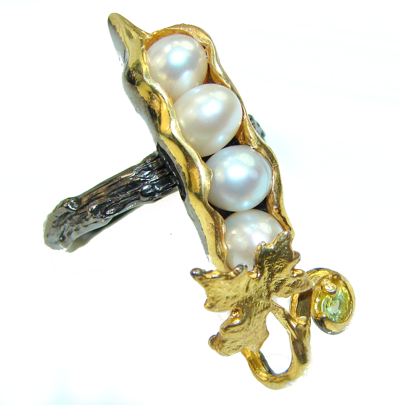 Precious Pea Pod Pearl 14K Gold and Rhodium over .925 Sterling Silver handmade Ring s. 8