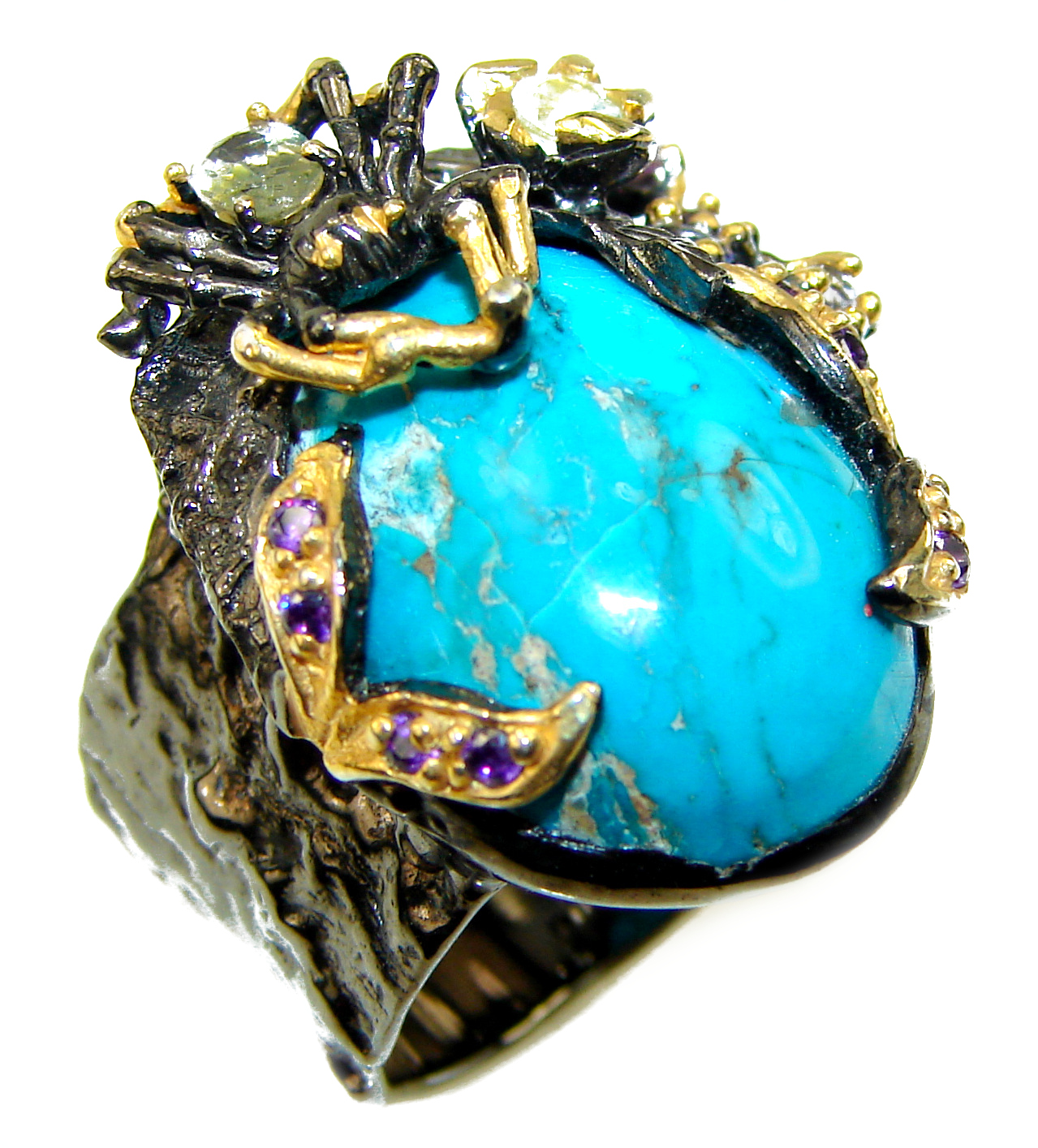 Turquoise black rhodium over .925 Sterling Silver ring; s. 8