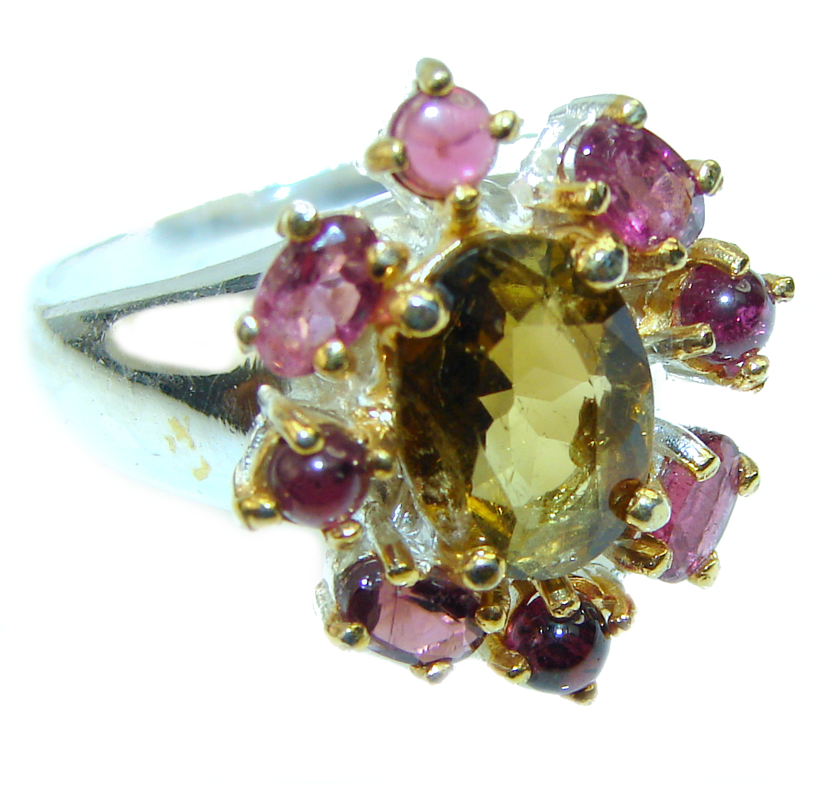 Authentic Rough Green Tourmaline over 2 tones .925 Sterling Silver Ring size 8