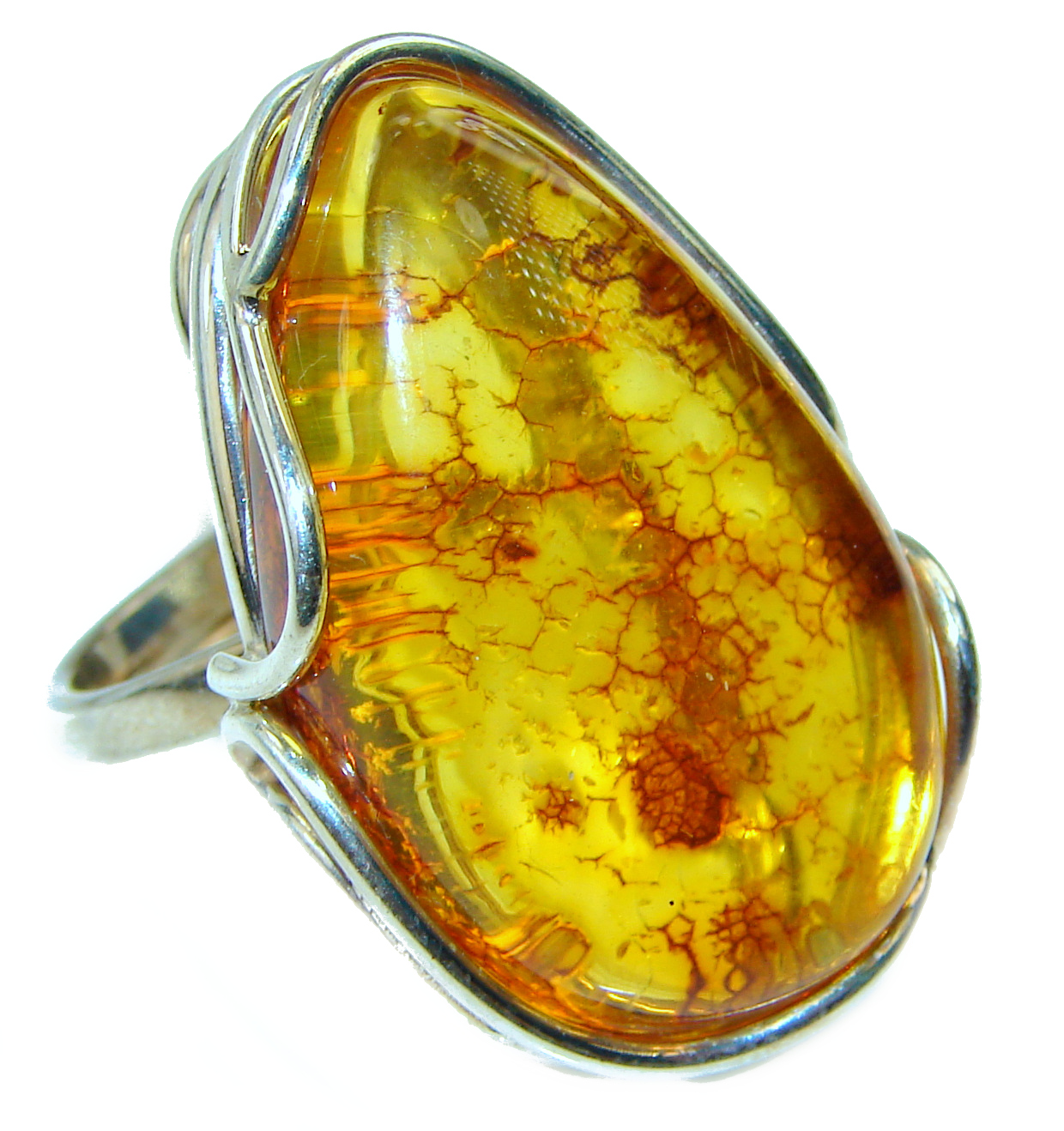 Authentic Baltic Amber .925 Sterling Silver handcrafted ring; s. 8 adjustable