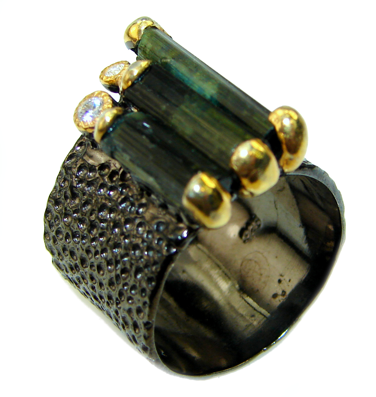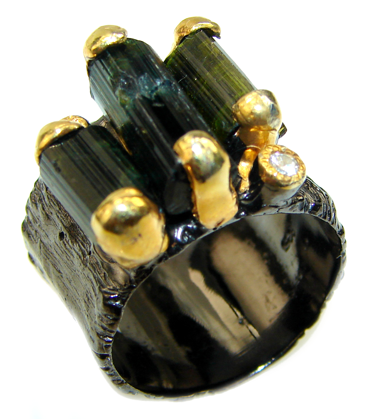 Authentic Rough Green Tourmaline over 2 tones .925 Sterling Silver Ring size 7