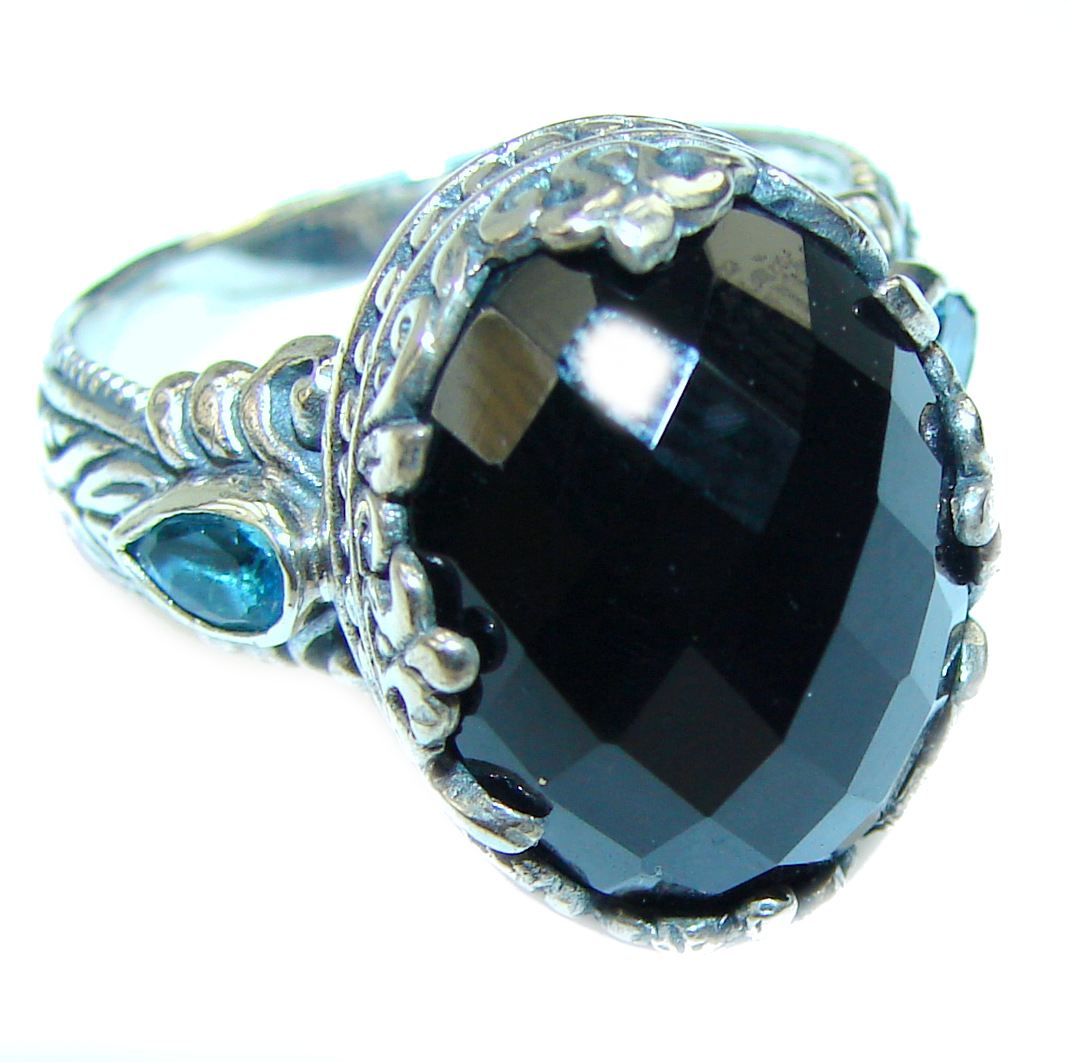 Huge Black Onyx .925 Sterling Silver handcrafted ring; s. 8 1/4
