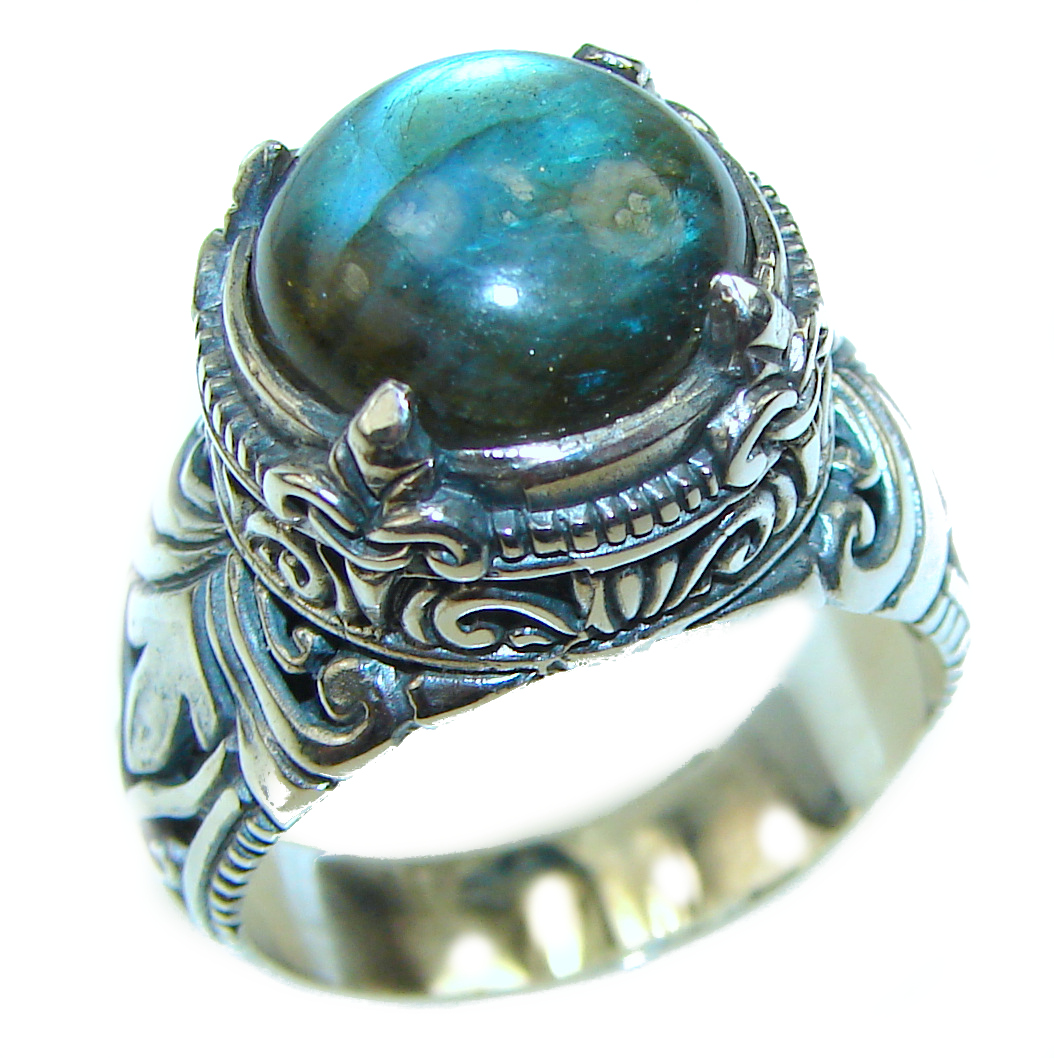 Vintage Design GENUINE Labradorite .925 Sterling Silver handcrafted ring size 9