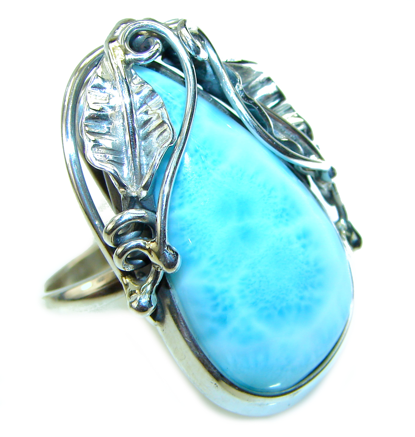 Precious Blue Larimar .925 Sterling Silver handmade ring size 7 adjustable