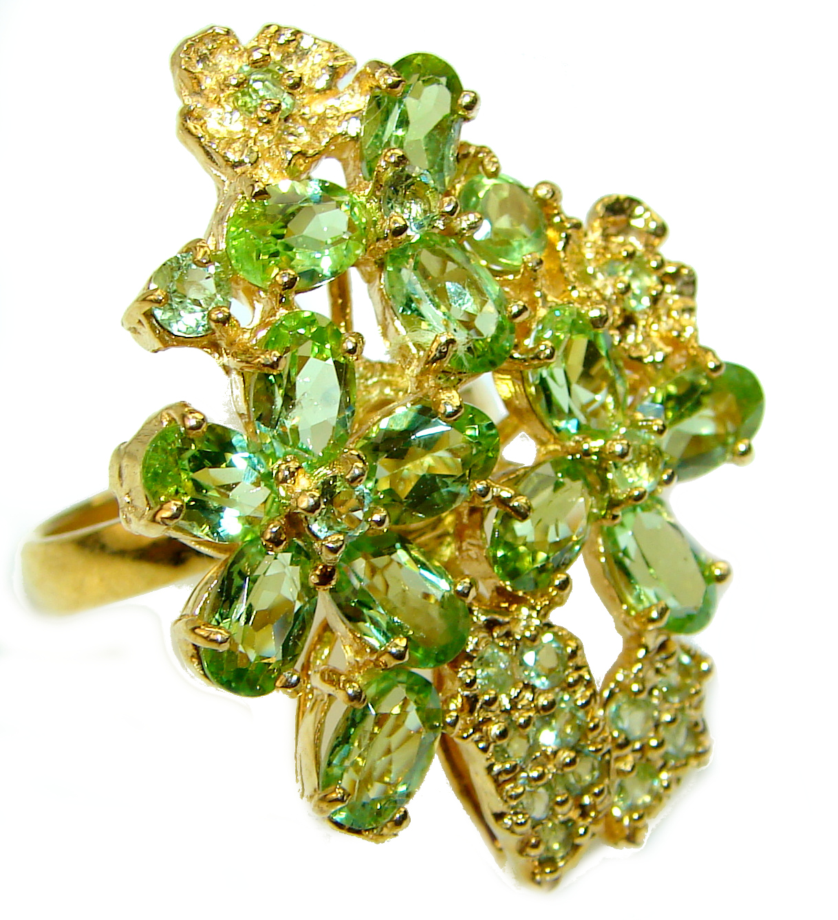 Spring Flower Peridot 14K Gold over .925 Sterling Silver ring s. 7 3/4
