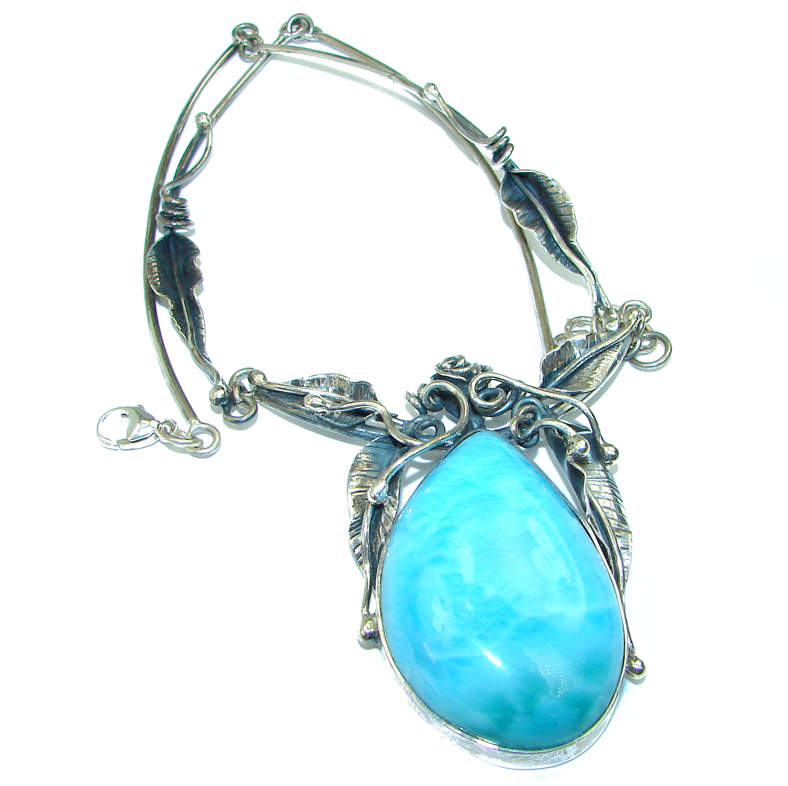Glorious Huge Vintage Design Best quality authentic Larimar .925 Sterling Silver handmade necklace
